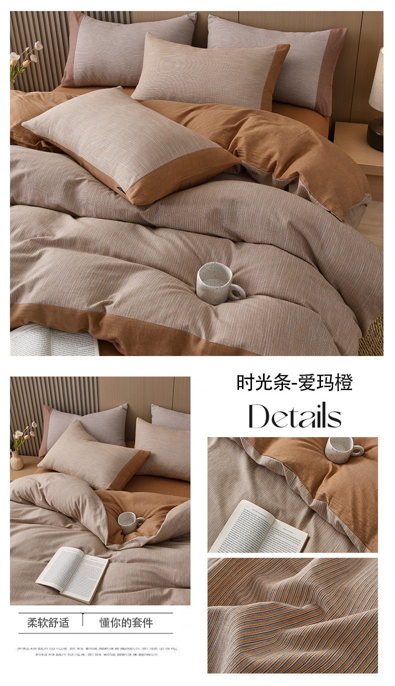 商品名称:金艾草2025年新款60S纯棉色织水洗大提花四件套 时光条-爱玛橙