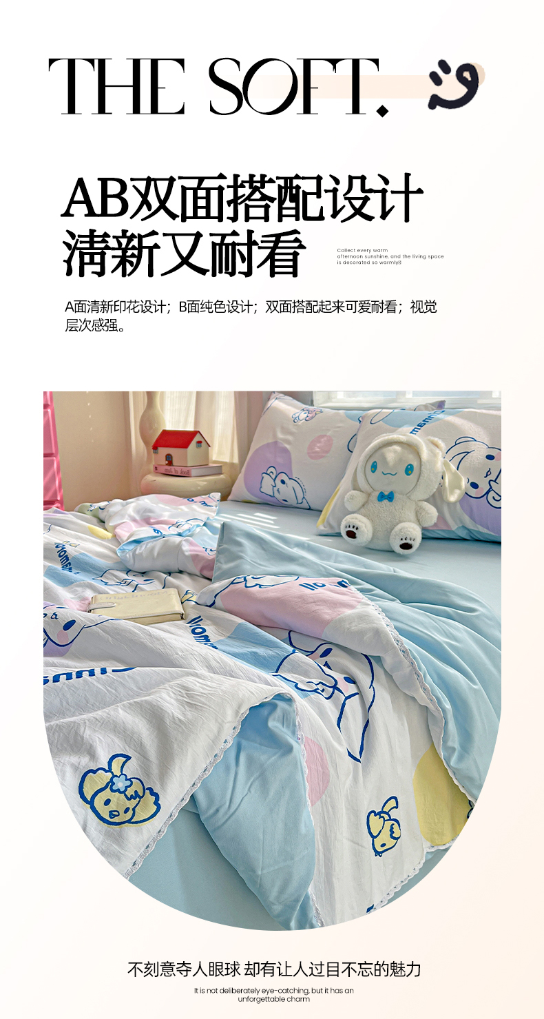 商品名称:妖妖家纺 2025新款超柔双层纱糯糯针织棉夏凉被四件套 可爱大耳狗