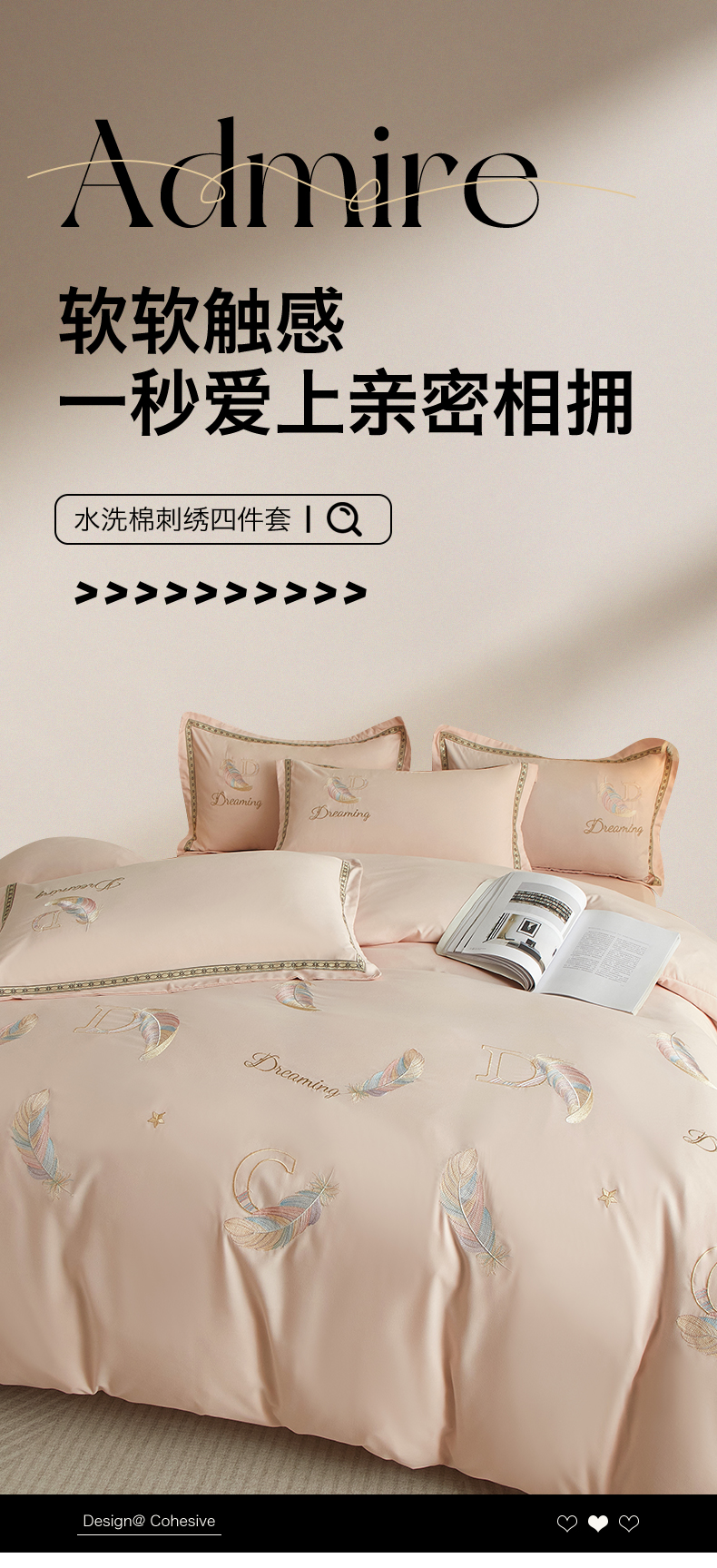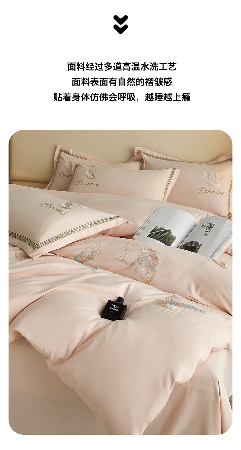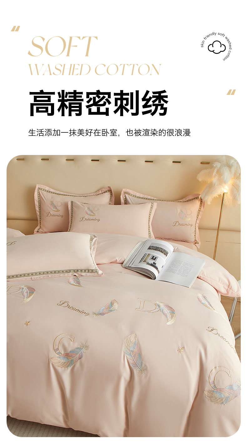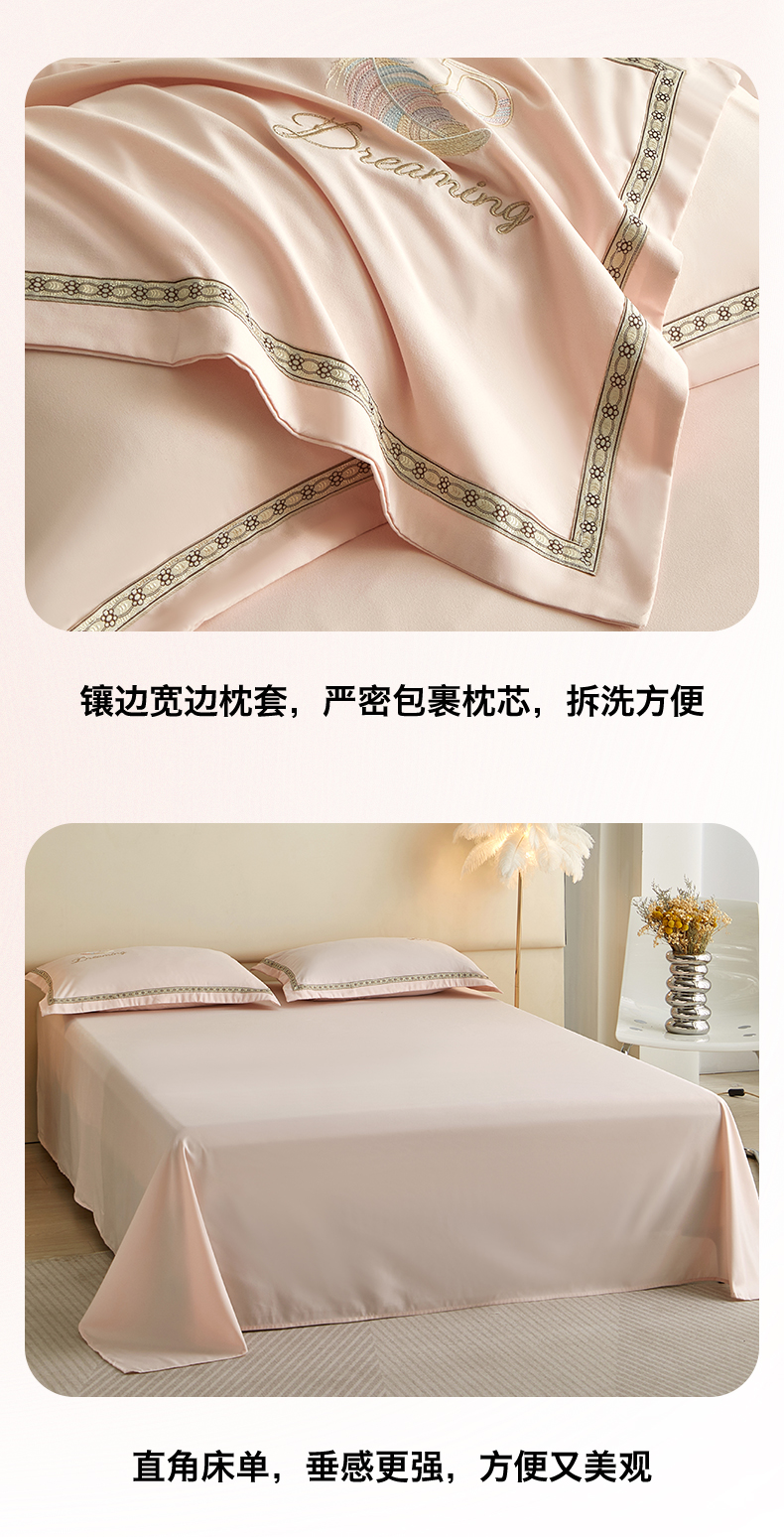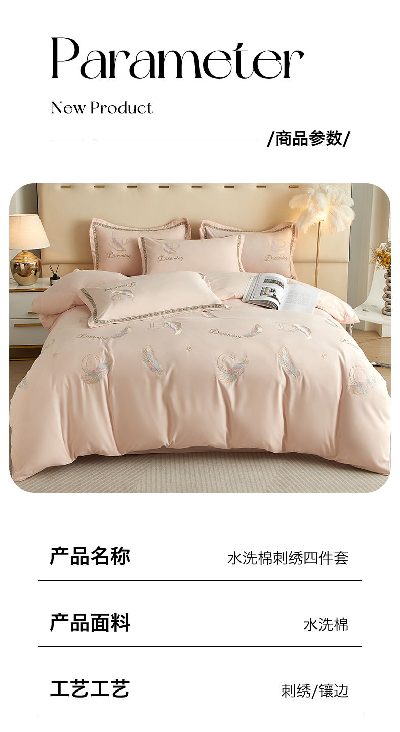 当前位置: 91家纺网 > 商品网购 > 床品套件 > 四件套 > 水洗棉四件套 > 佳宇轩 2025爆款水洗棉五彩刺绣四件套简约轻奢织带绣花床单床笠被罩4件套-蜜羽 蜜羽-嫩粉