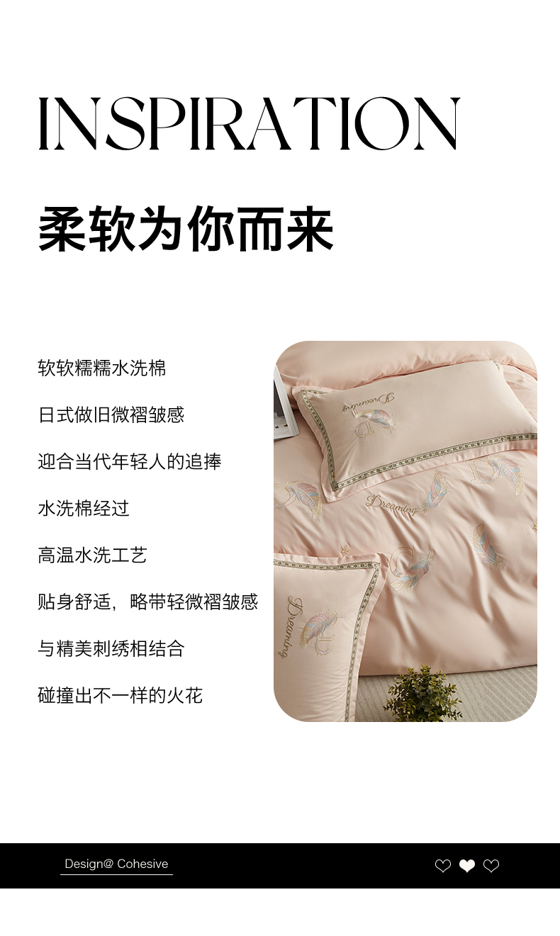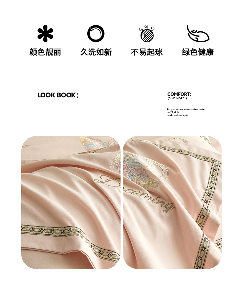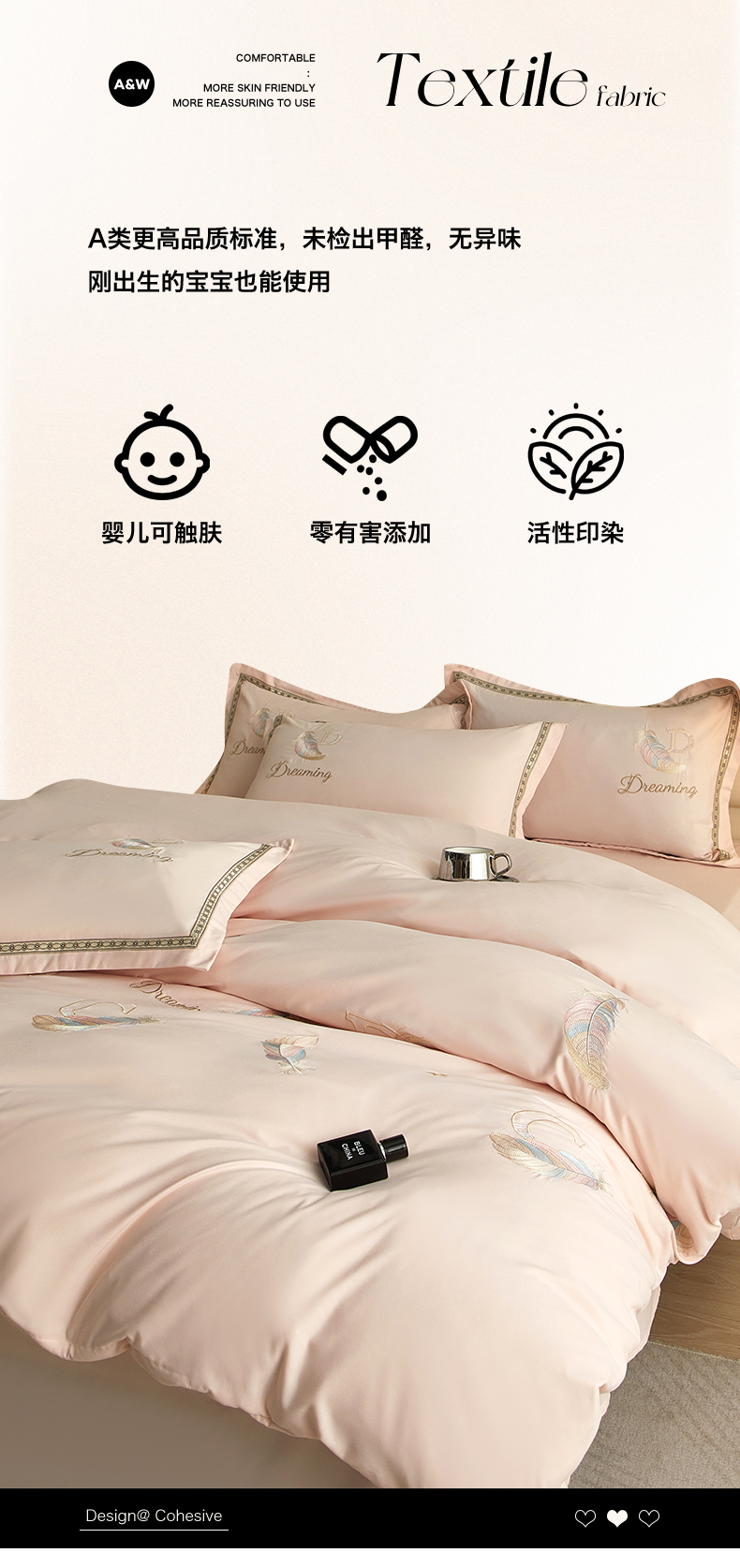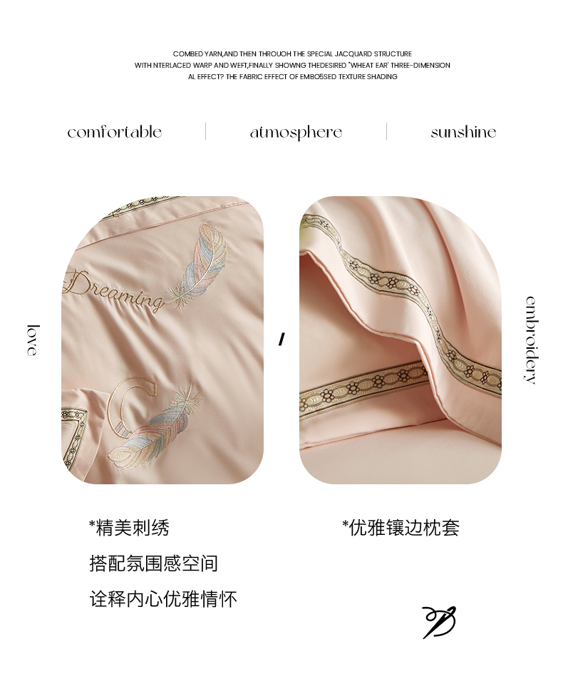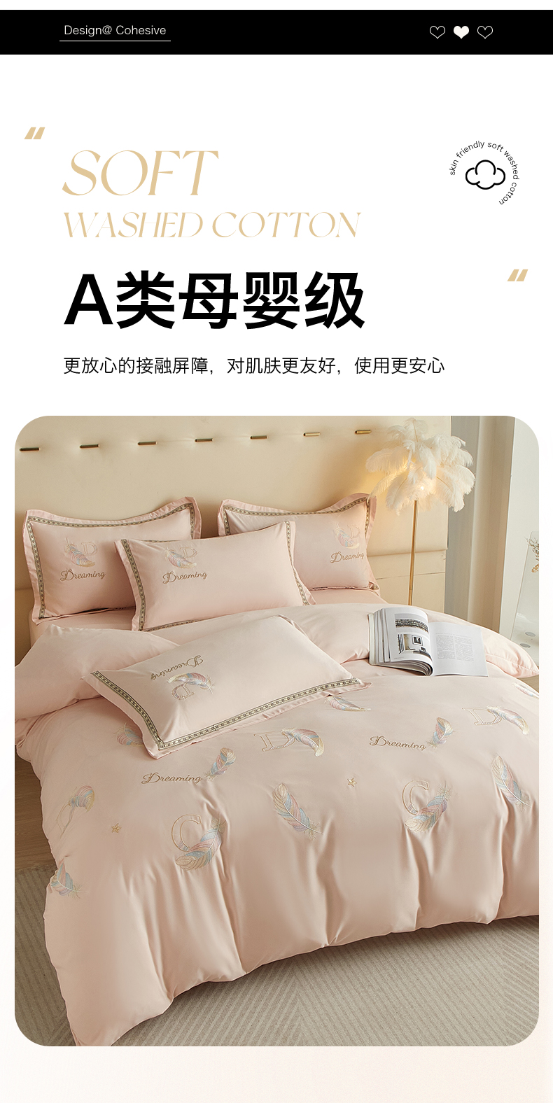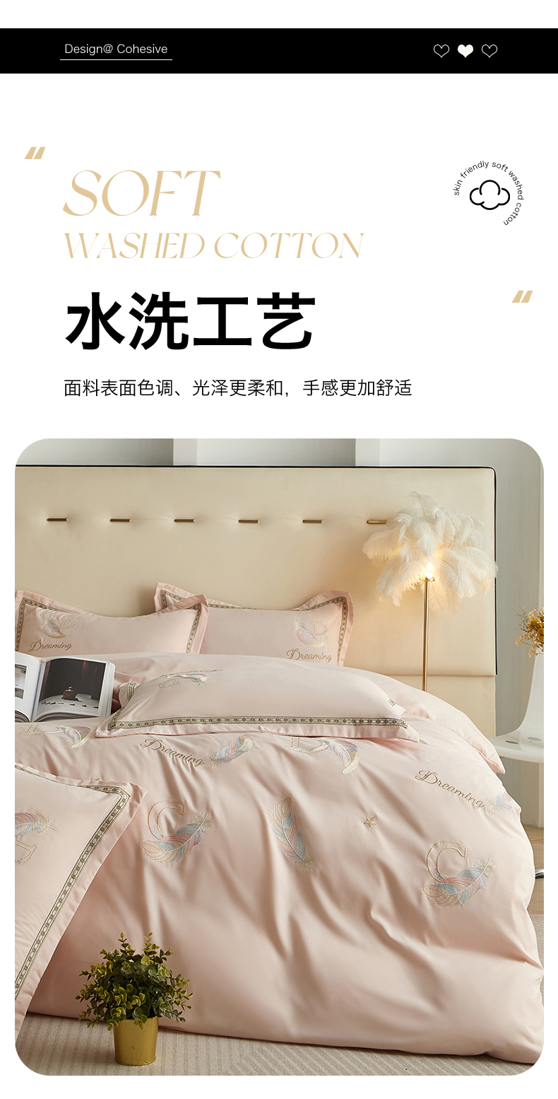 当前位置: 91家纺网 > 商品网购 > 床品套件 > 四件套 > 水洗棉四件套 > 佳宇轩 2025爆款水洗棉五彩刺绣四件套简约轻奢织带绣花床单床笠被罩4件套-蜜羽 蜜羽-嫩粉