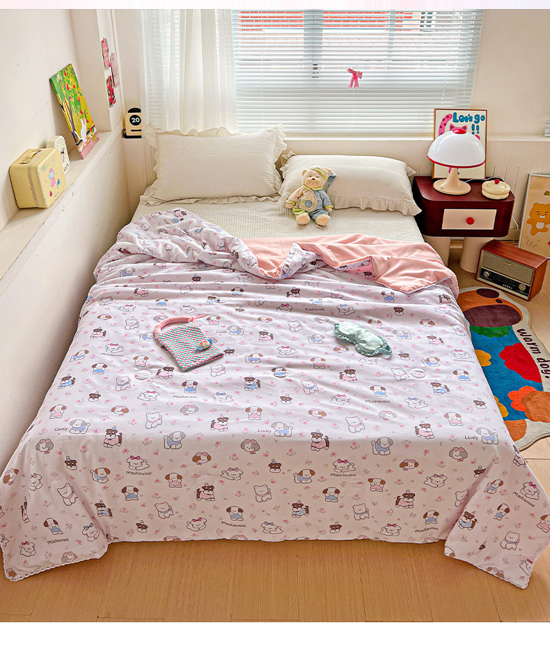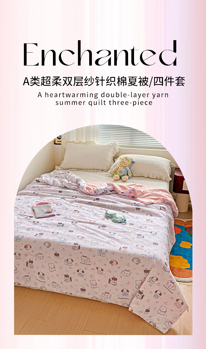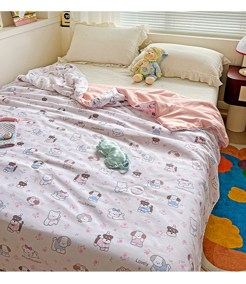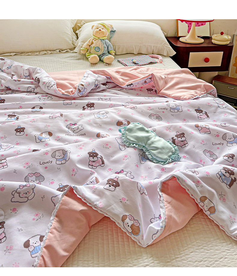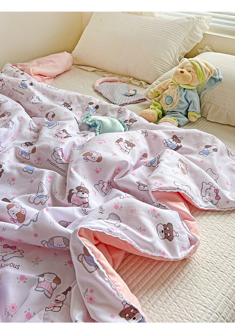 商品名称:妖妖家纺 2025新款超柔双层纱糯糯针织棉夏凉被 狗狗乐园