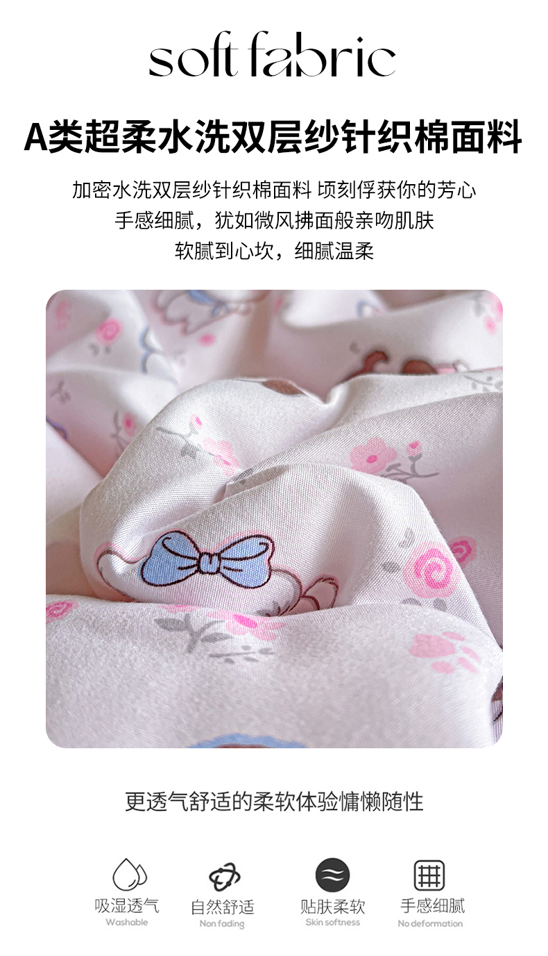(总)妖妖家纺 2023新款超柔水洗双层纱三件套宿舍床,风铃花,后花园,花儿与兔,及风情,尽相思,静谧,可爱棕熊,兰花草,柿柿如意,涂鸦爱心,夏日樱桃,小熊花园,月季花香