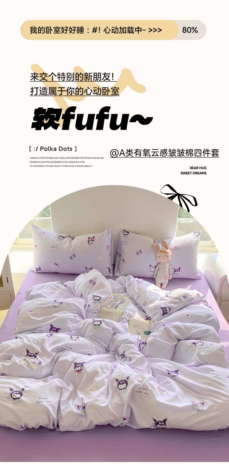 2025云感皱皱棉单品水洗棉单床笠被套罩床垫套 床笠 小桃糯糯
