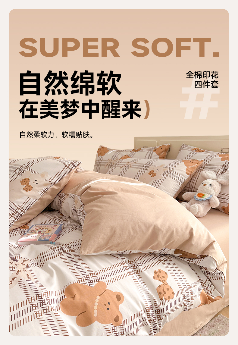 商品名称:仔仔熊 2025新款全棉印花四件套 熊仔