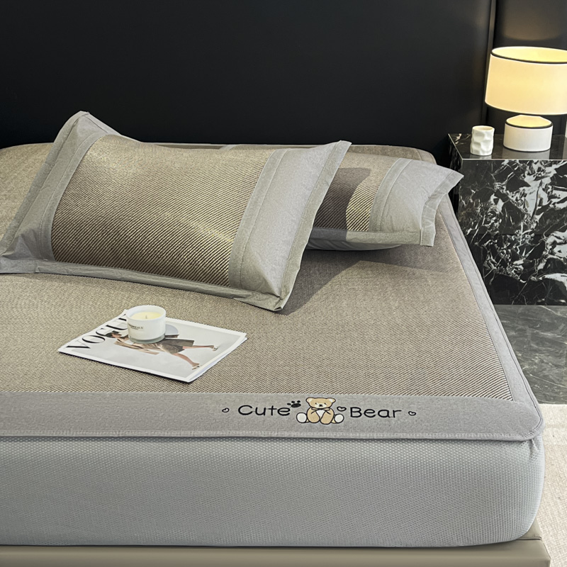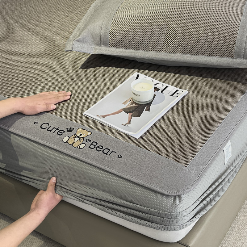 商品名称:莱米家纺 2025新款加厚凉感绣花冰藤席 幸运熊—香槟-床笠