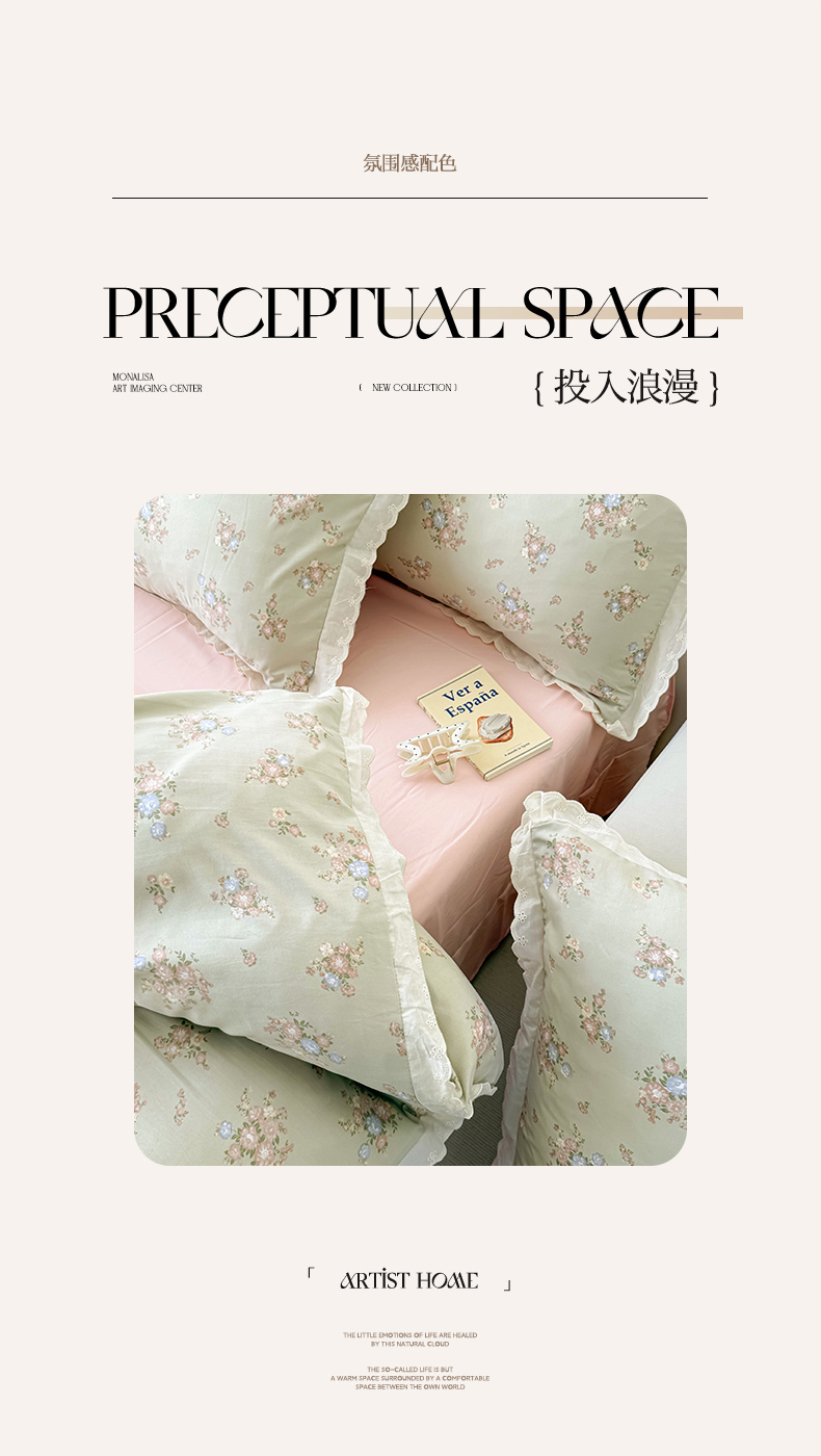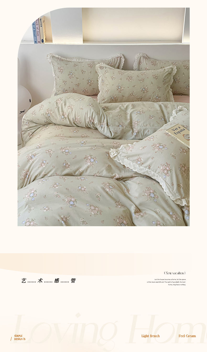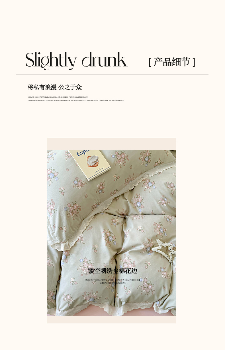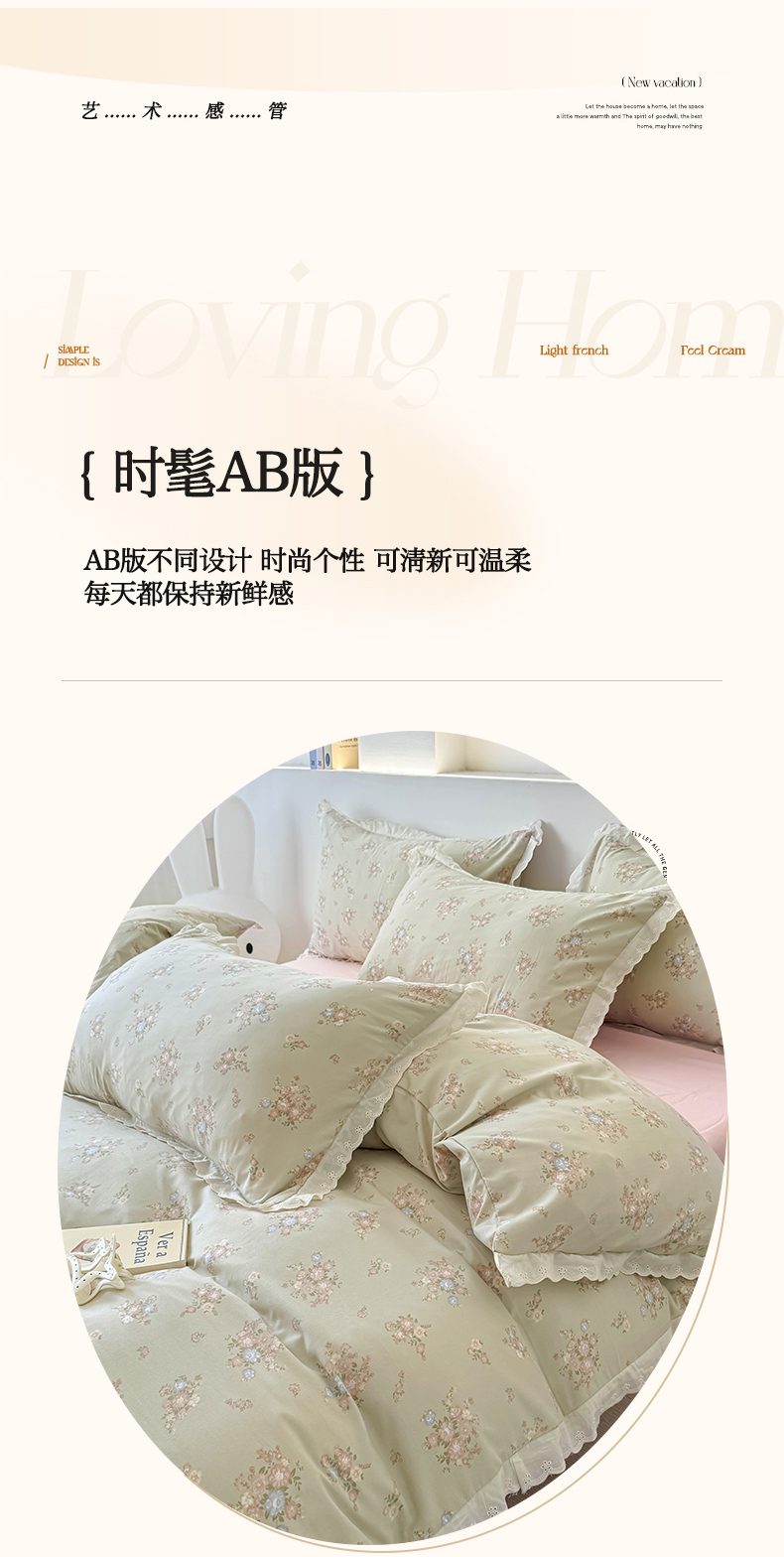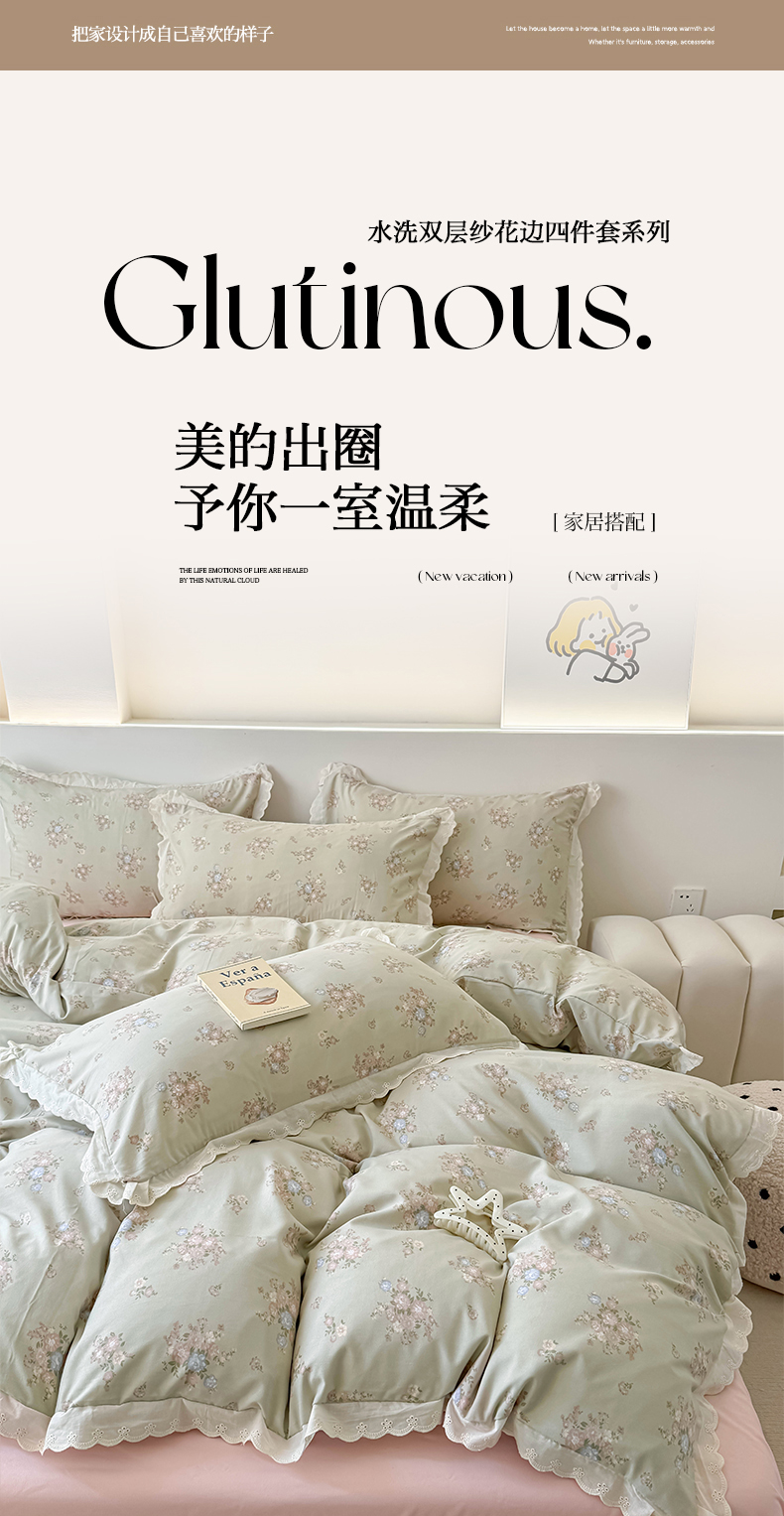 商品名称:吾欢心 2025新款韩版花边水洗双层纱四件套夏被四件套(棚拍图) 莫奈花园