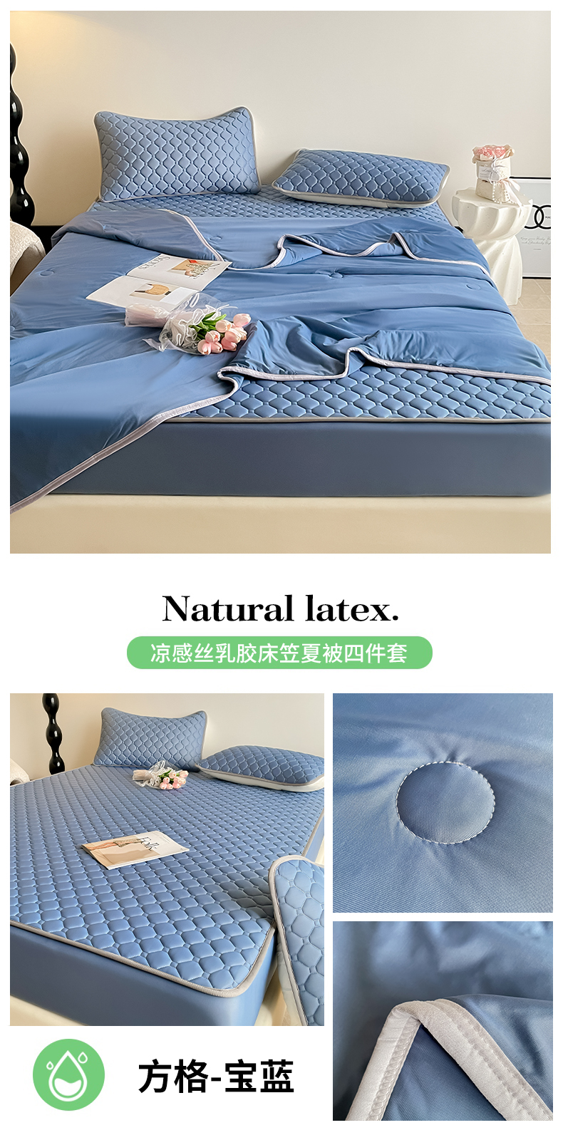 2025新款加厚乳胶床笠款经典纯色夏被套件 方格-宝蓝