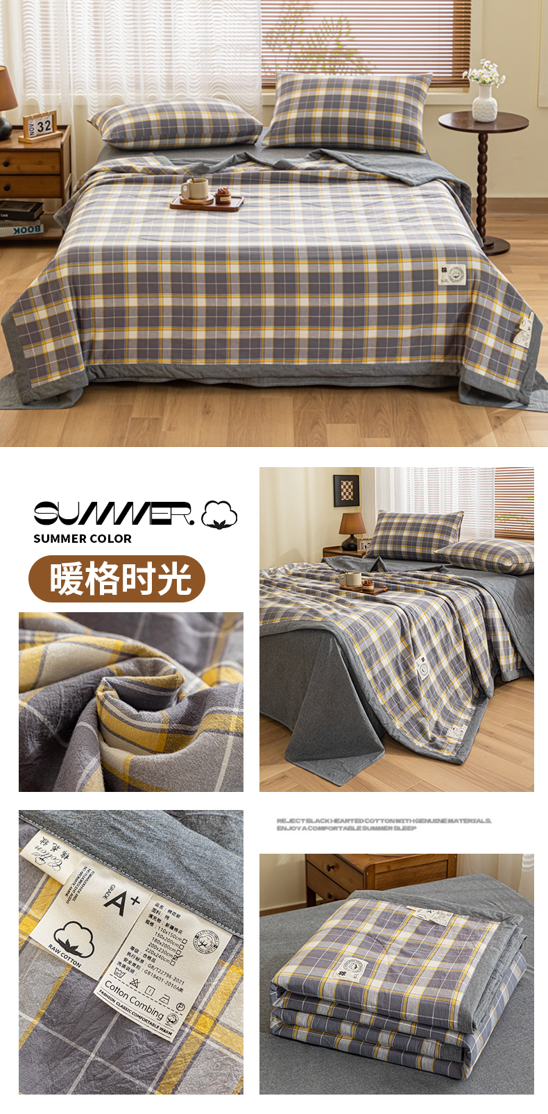 当前位置: 91家纺网 > 商品网购 > 被子 > 夏被 > 鑫棉坊 2025新款全棉色织水洗棉A类棉花夏被可机洗空调被四件套床单枕套 暖格时光