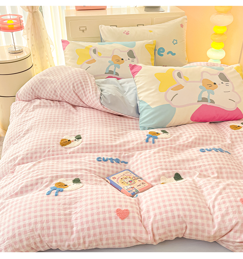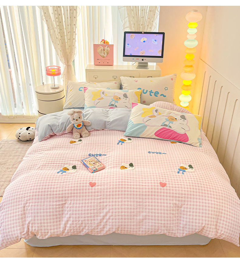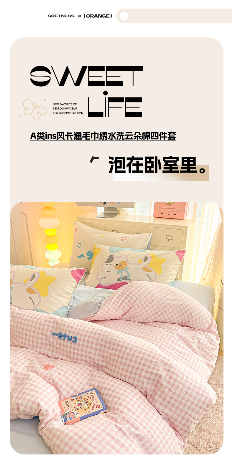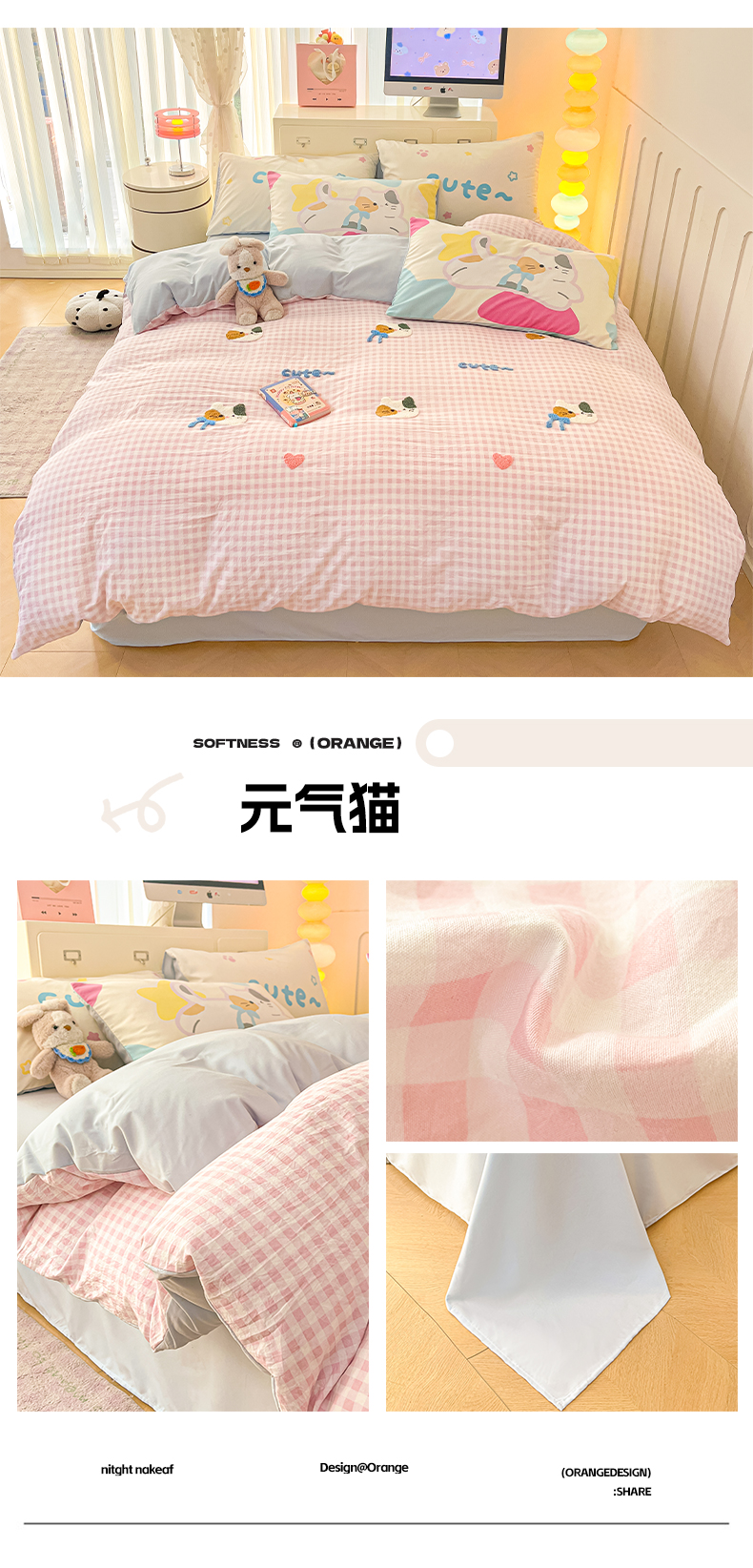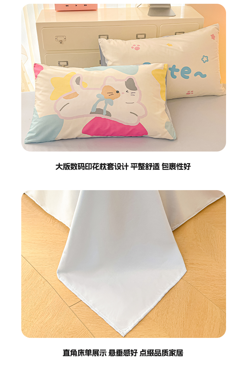 商品名称:如一 2025新款A类数码枕套卡通毛巾绣水洗棉四件套 元气猫