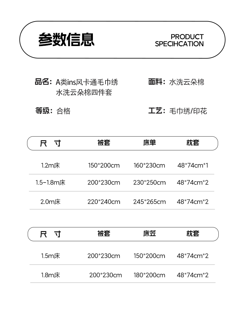 (总)如一 2025新款卡通毛巾绣系列牛奶绒四件套,卡皮柿子,爱心天使,豹纹黑皮,草莓灰猫,蛋糕小狗,粉格小猫,海绵宝宝,快乐企鹅,拉布饼干,蓝格黑猫,领结粉兔,苹果拉布,竖条西高,晚安小象,星星宝贝,星星木马,星星派对,星星苹果,星月猫咪,樱桃黑猫