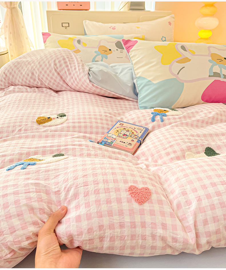 (总)如一 2025新款高克重卡通贴布绣牛奶绒四件套,爱心猫,狮毛狗,雪纳瑞,线团狗,豹纹兔,蓝格猫,粉格猫,咖啡狗,雨伞猫