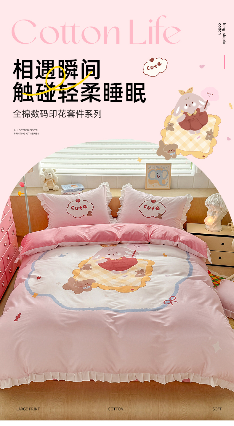 当前位置: 91家纺网 > 商品网购 > 床品套件 > 四件套 > 全棉普通四件套 > 玉元坊 2025新款全棉纯棉数码印花四件套 蛋糕公主