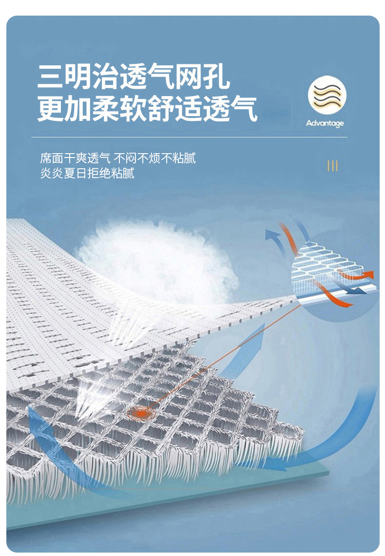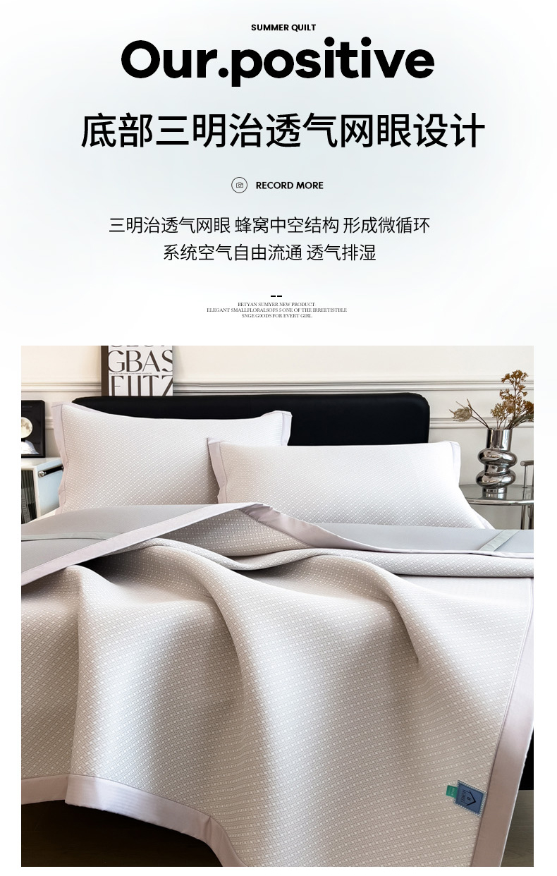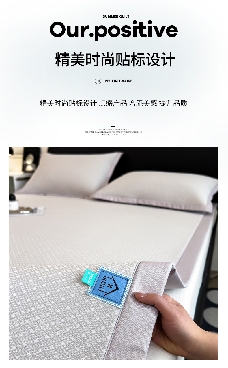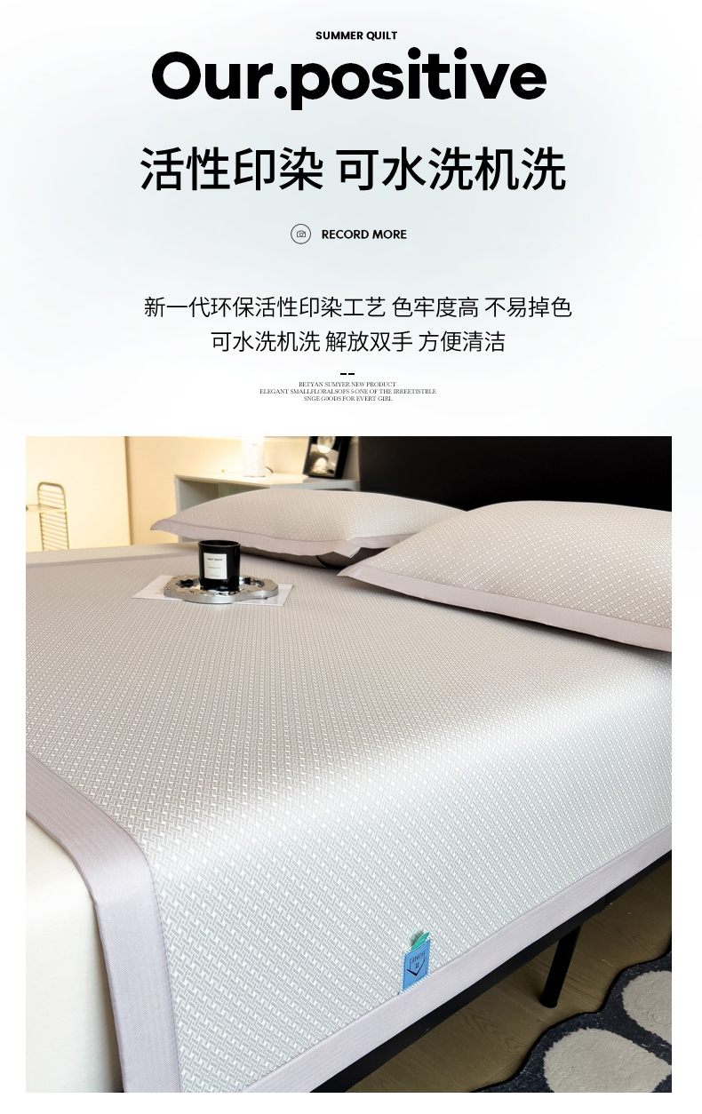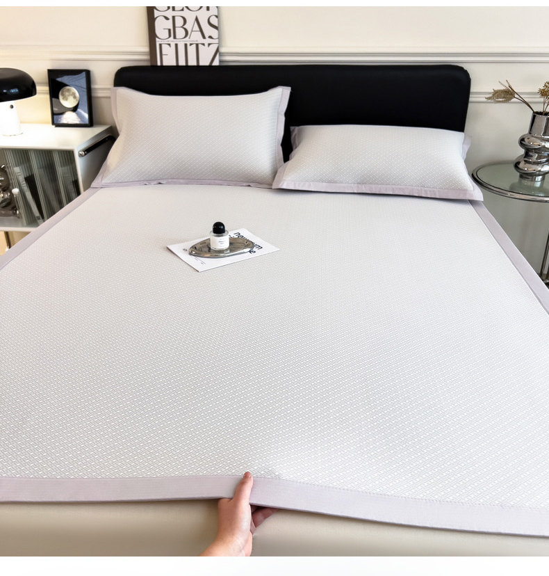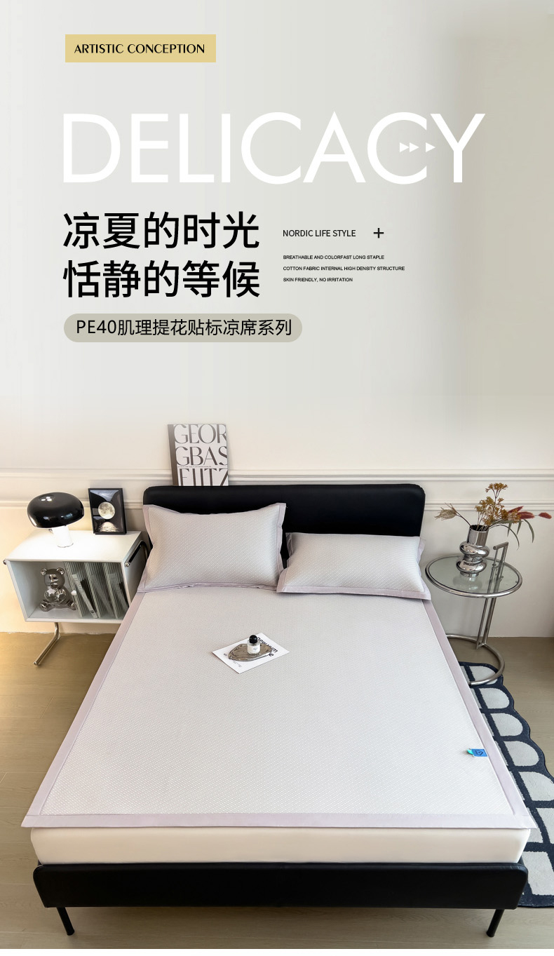 倾慕家纺 2025新款PE40肌理提花贴标席子凉席-床席款 立体格米灰床席款