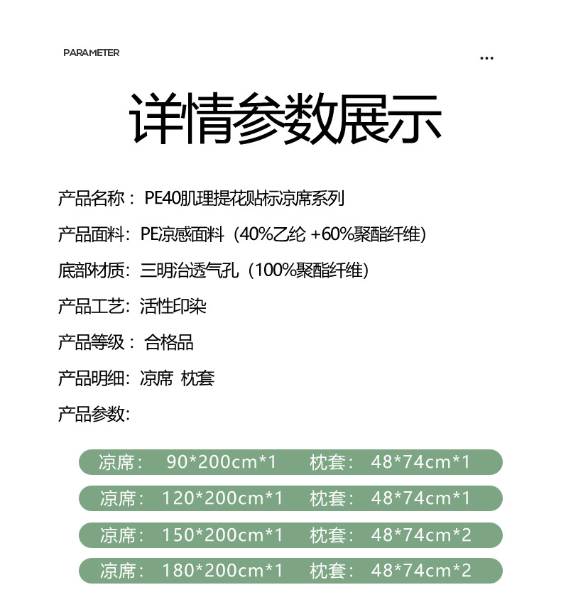 商品名称:倾慕家纺 2025新款PE40肌理提花贴标席子凉席-床席款 立体格米灰床席款