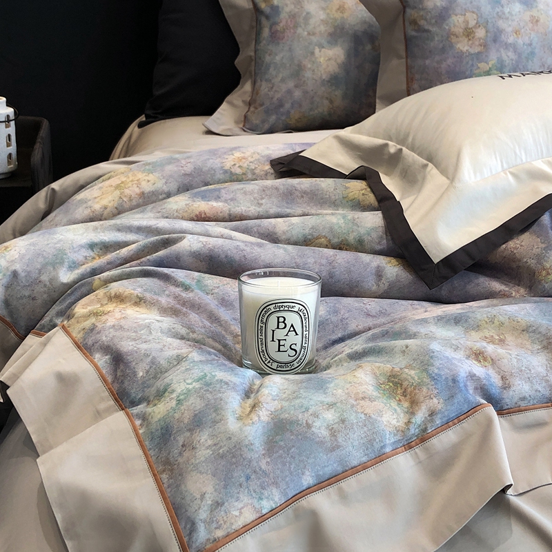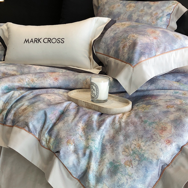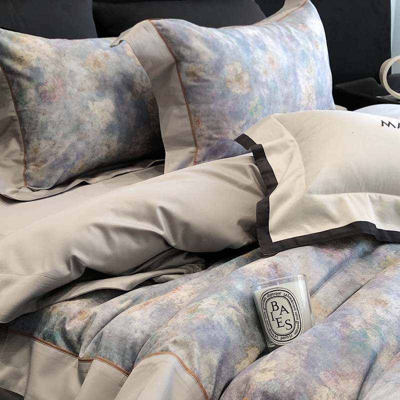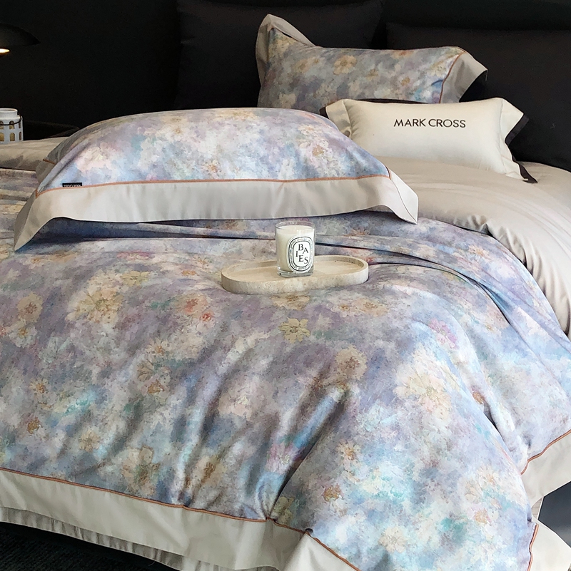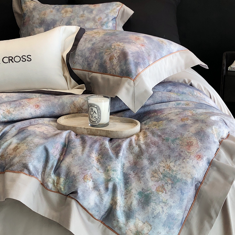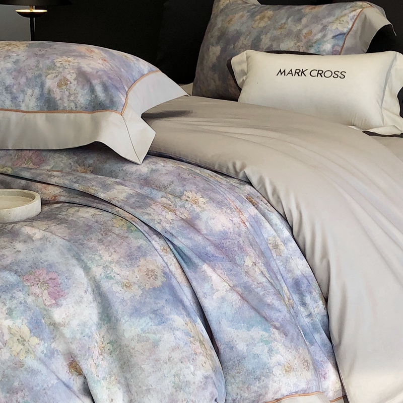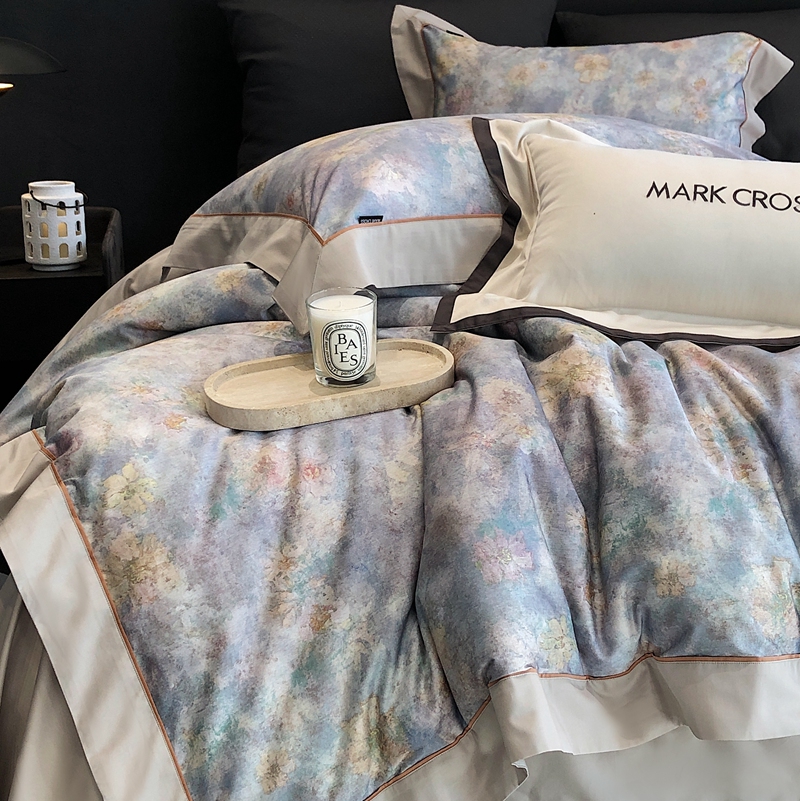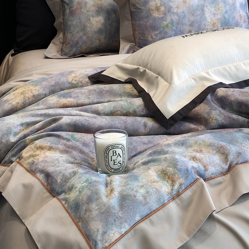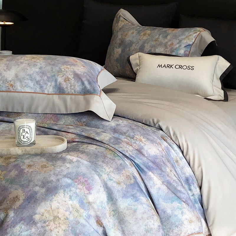 佳汐蓝2025新款典雅诗意花卉全棉印花四件套券后不低于438/458元 时光之恋-柔雾蓝