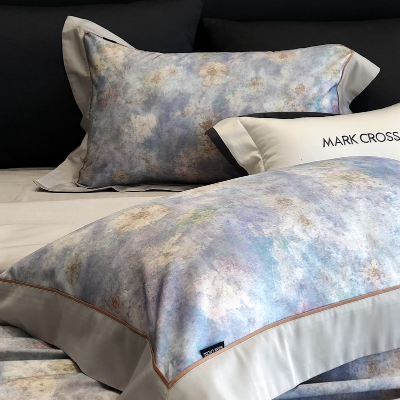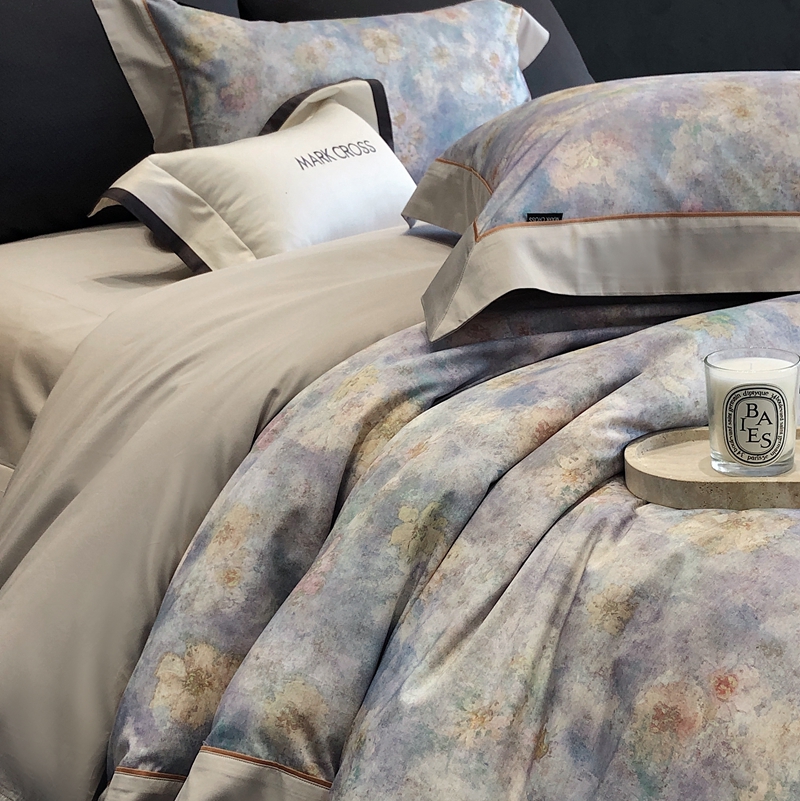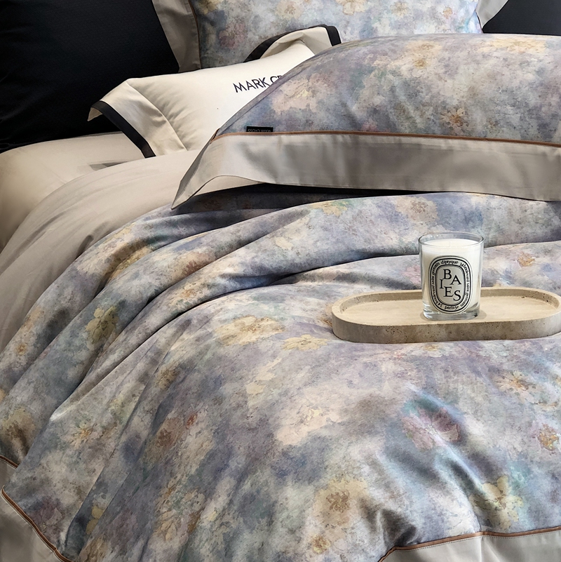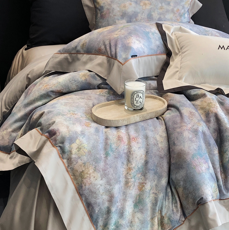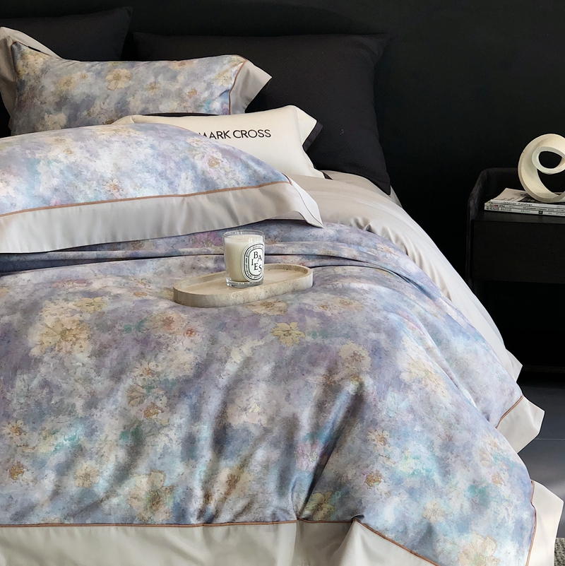 商品名称:佳汐蓝2025新款典雅诗意花卉全棉印花四件套券后不低于438/458元 时光之恋-柔雾蓝