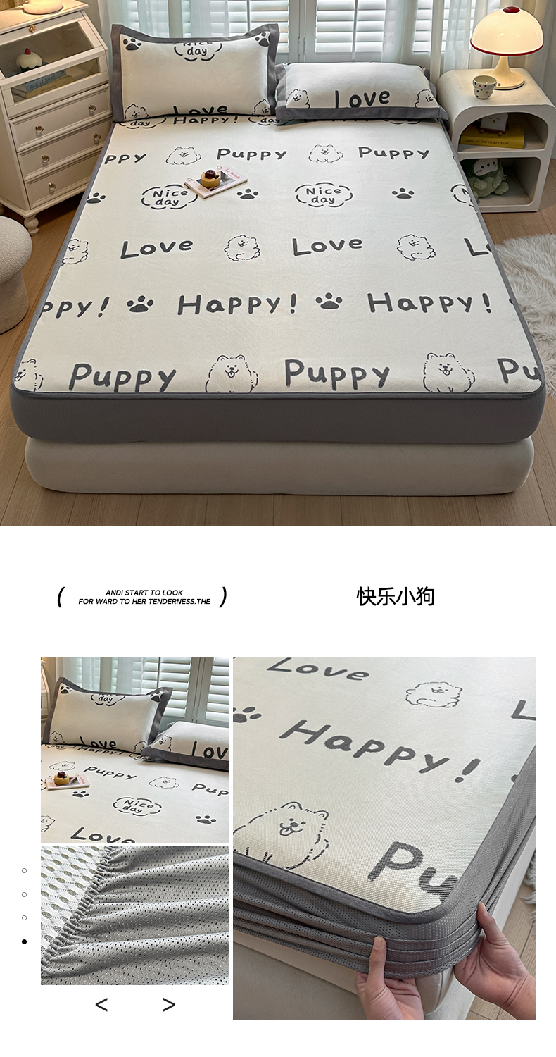 商品名称:迪乐妮 2025新款真冰藤印花床笠款凉席 快乐小狗