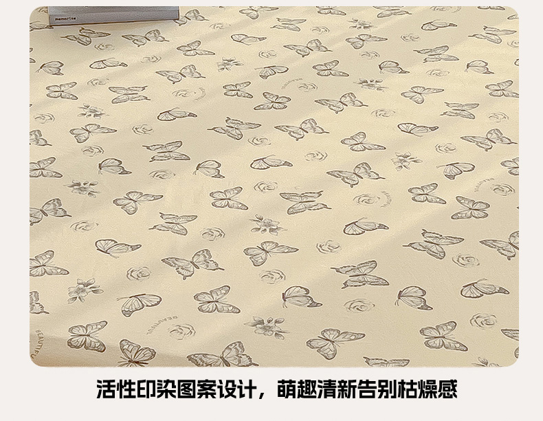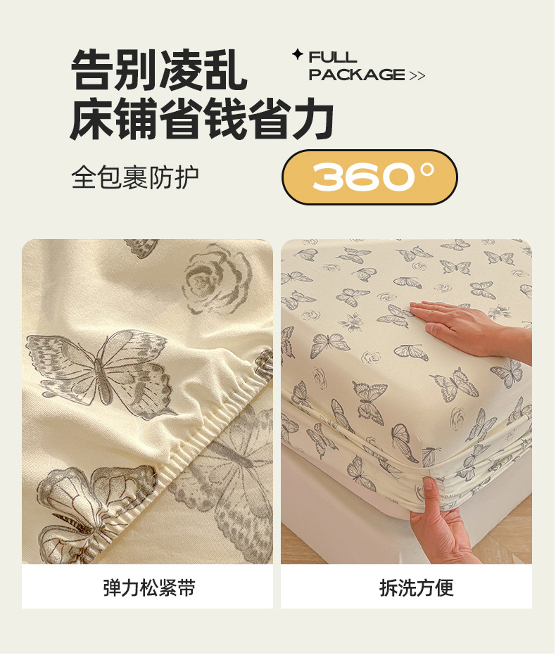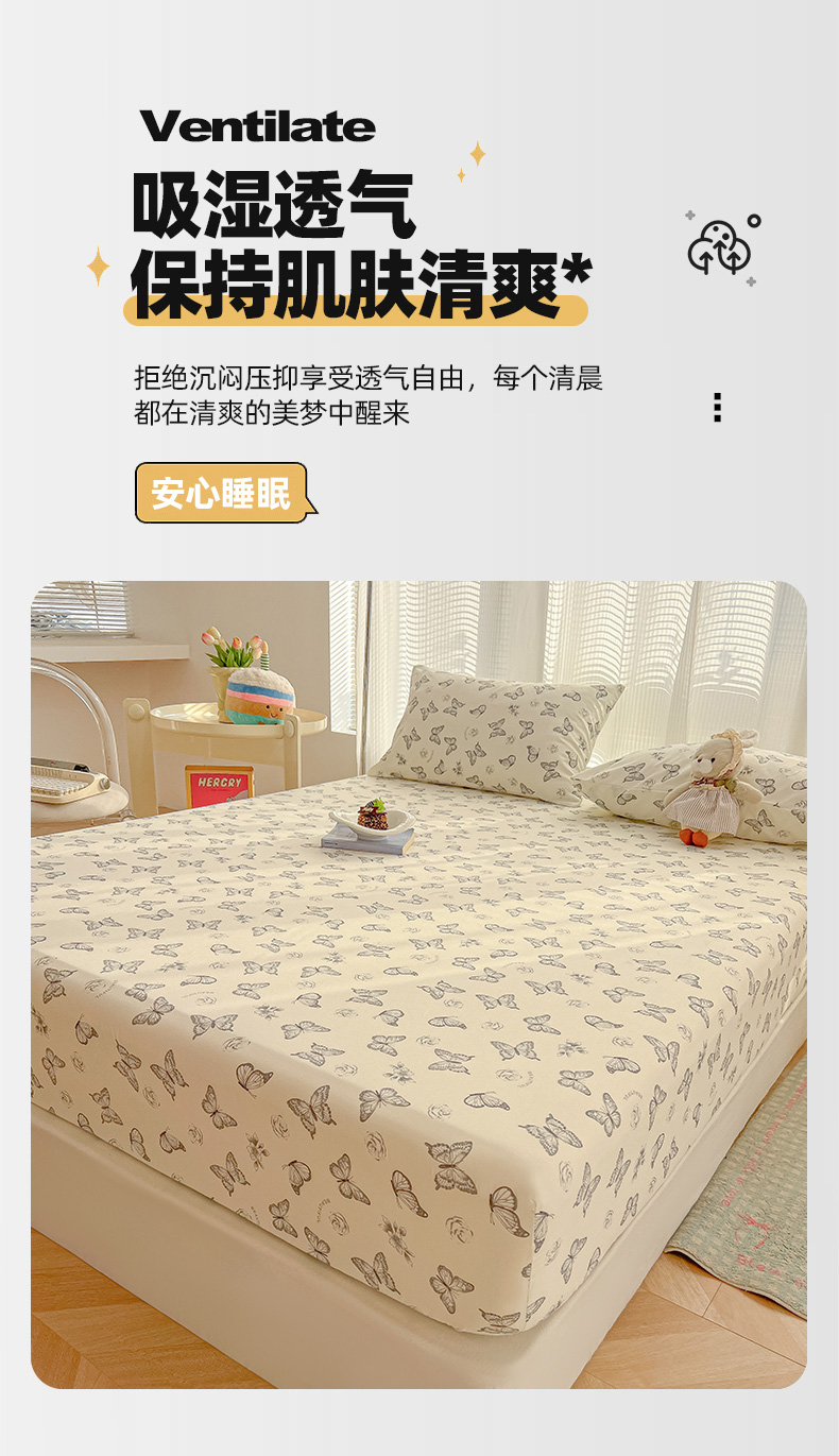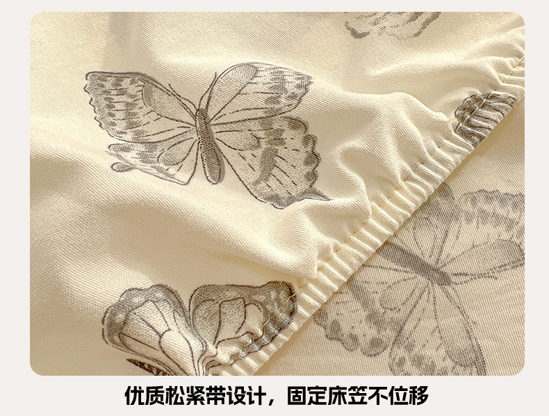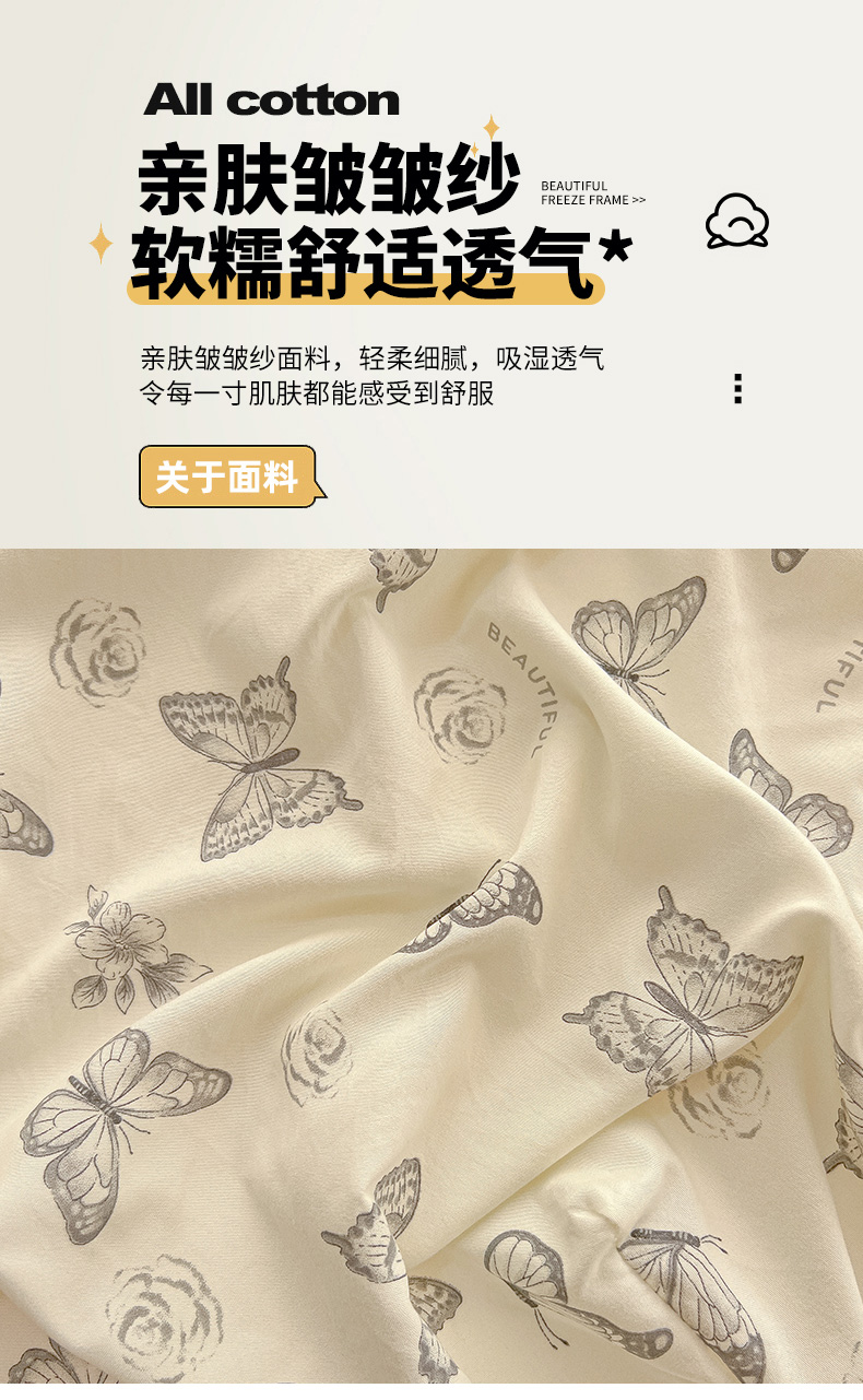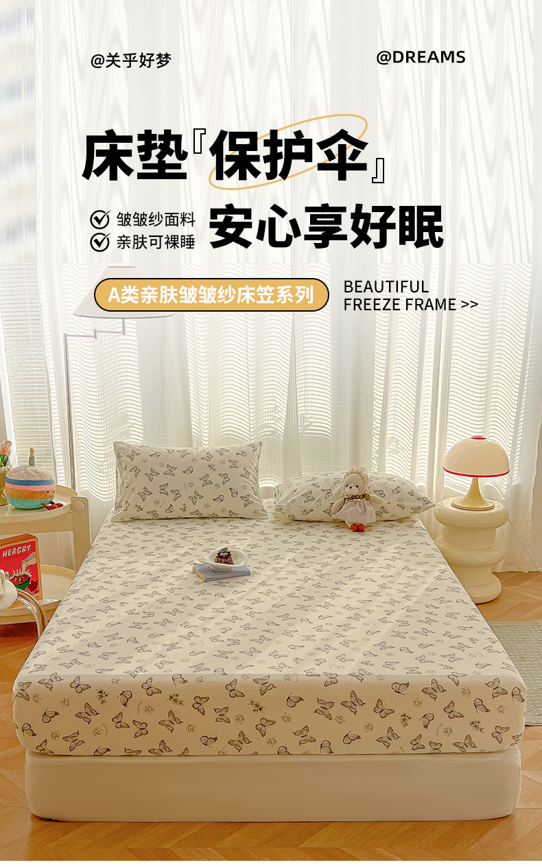 • 91家纺网 家纺一手货源 找家纺 眠帛家居 2025新款A类水洗皱皱纱印花床笠 蝴蝶偏偏