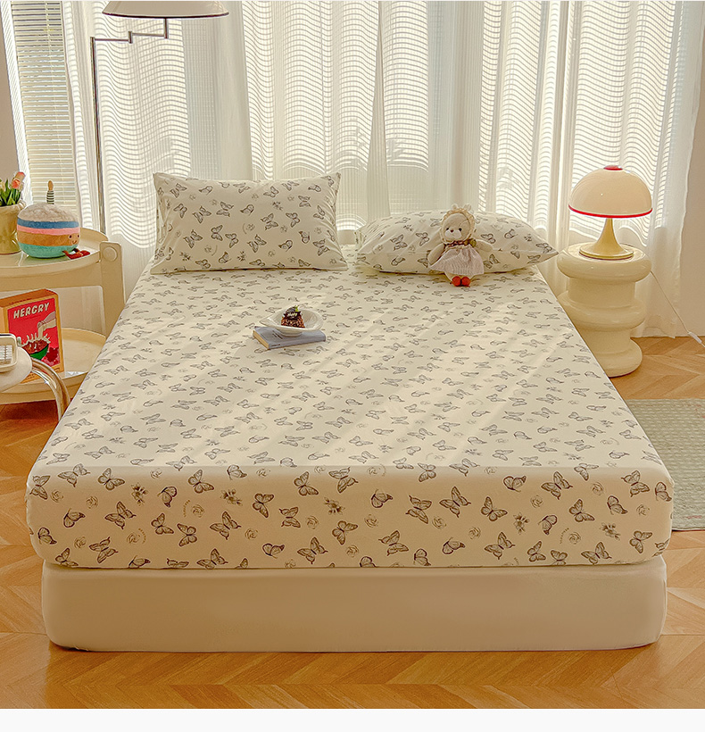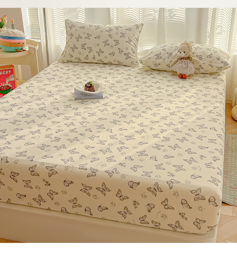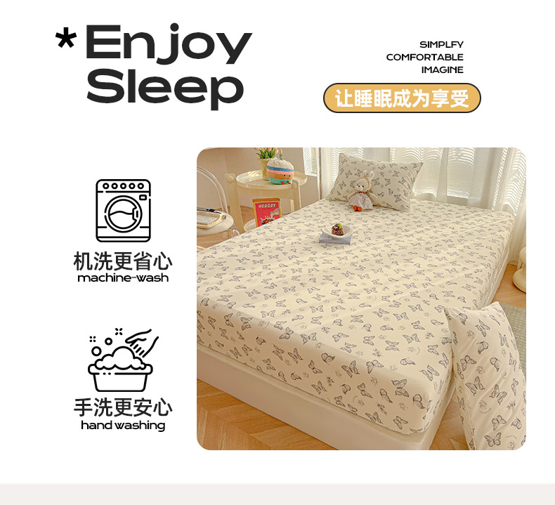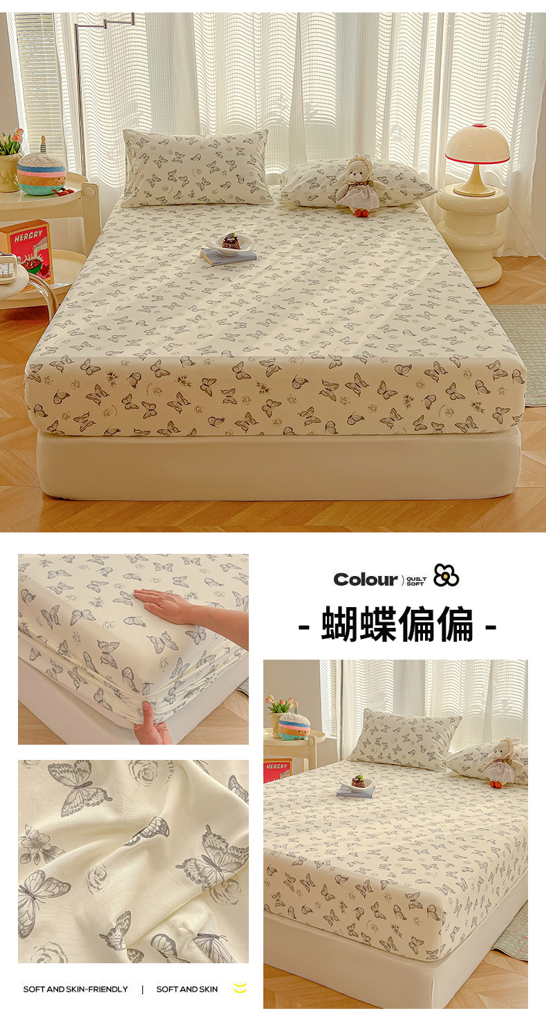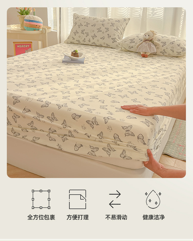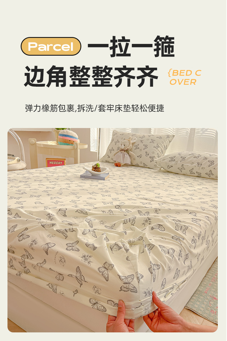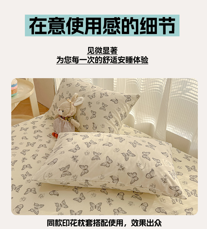 • 91家纺网 家纺一手货源 找家纺 眠帛家居 2025新款A类水洗皱皱纱印花床笠 蝴蝶偏偏