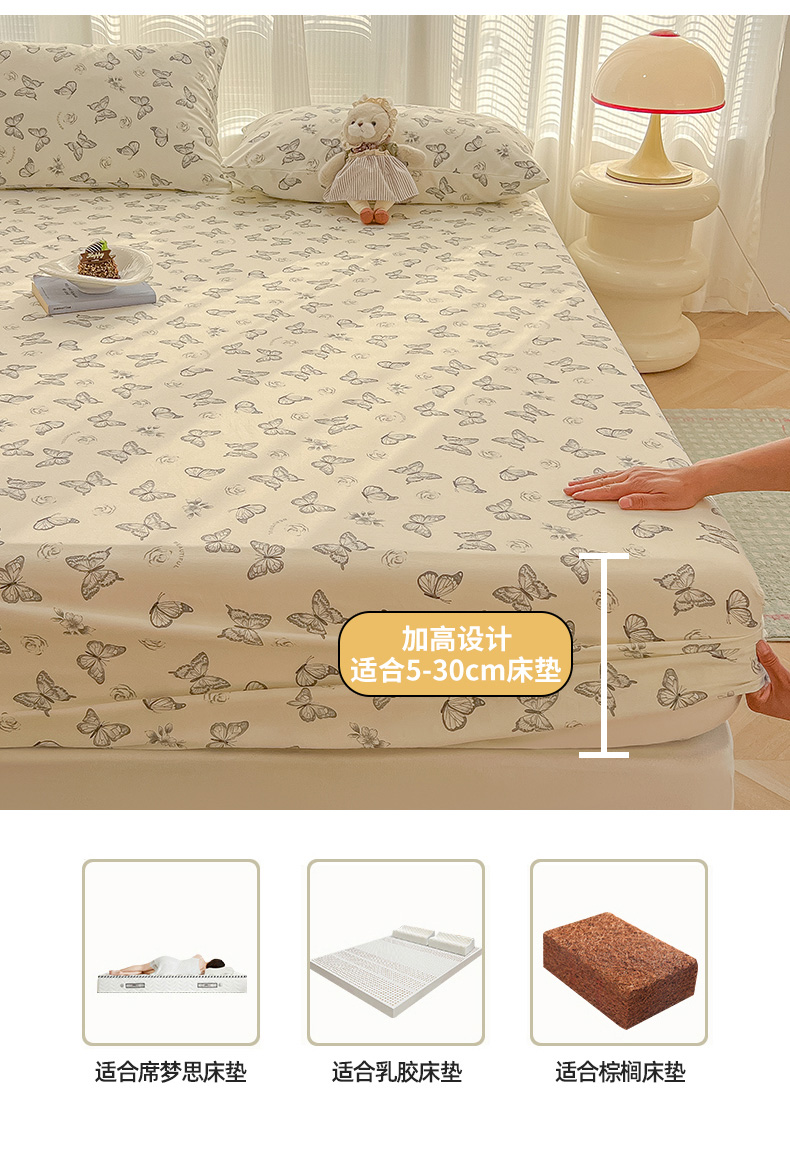 (总)眠帛家居 2025新款A类水洗皱皱纱印花床笠,乖巧猫咪,蝴蝶偏偏,花蔓,可爱小狸,浪漫,蔓蔓