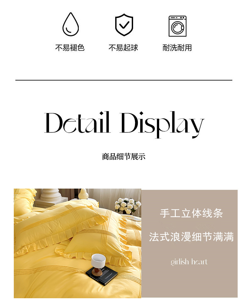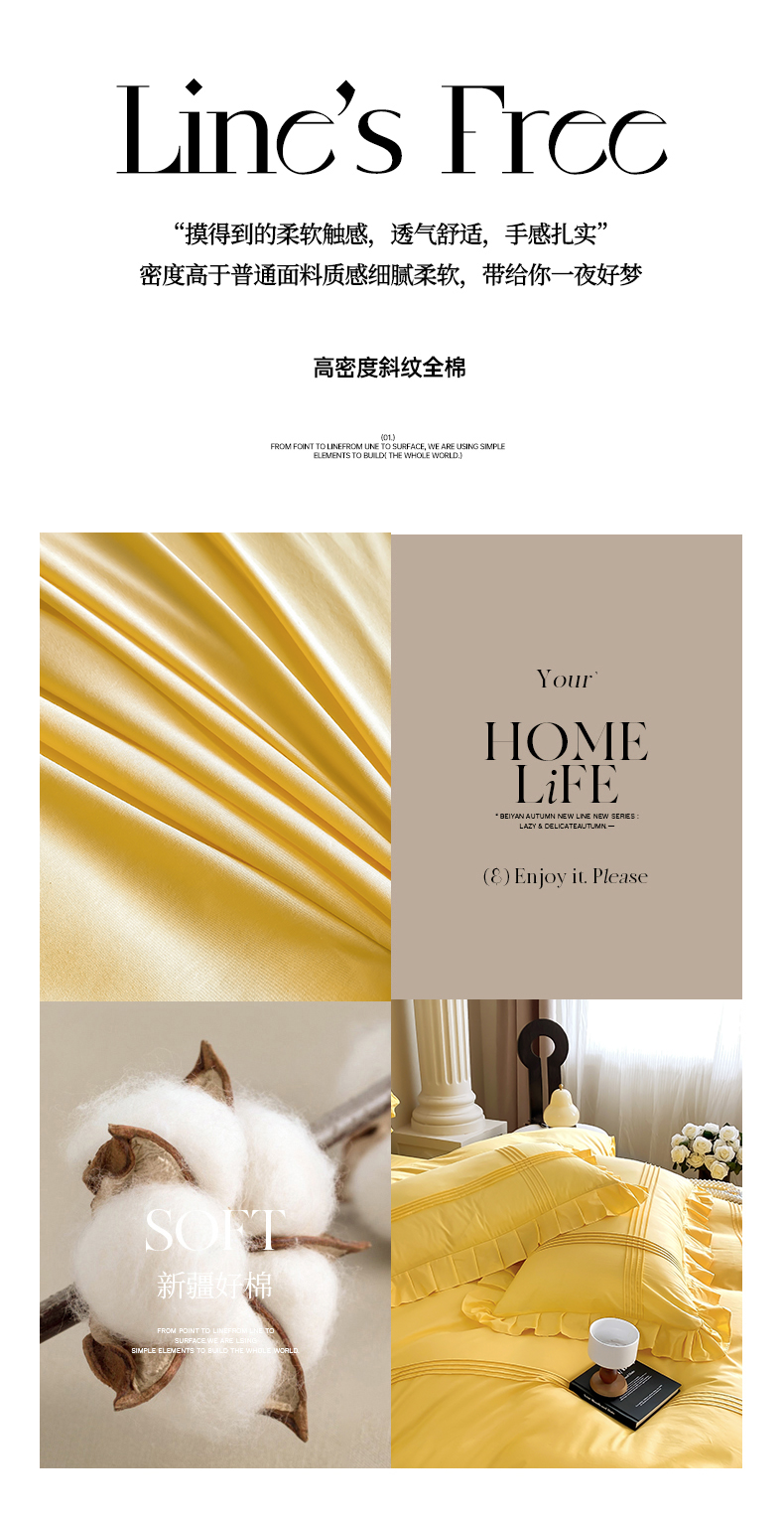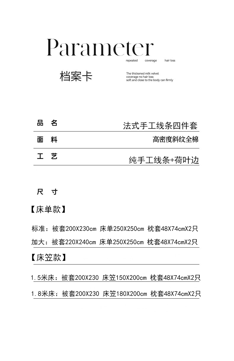 当前位置: 91家纺网 > 商品网购 > 床品套件 > 四件套 > 全棉普通四件套 > (总)花香四季家纺 2025新款全棉13376公主风纯棉法式手工立体线条四件套