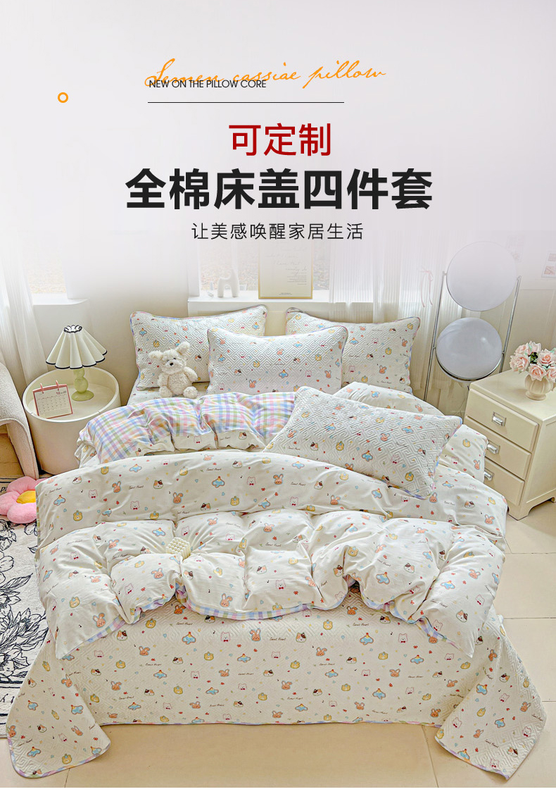 (总)羽爱家纺 2025新款A类全棉印花水洗床盖四件套系列,薄荷碎,笔记,草莓物语,动漫恐龙,格瑞,好伙伴,花间鹿,菱形恐龙,萌宠国度,萌萌兔,奶油兔,清新,森林派对,甜心猫猫,童话,童年,汪汪队,小心意,小幸运,心相印,星星点灯,熊猫林,雅格,伊丽莎白,组合图仅展示
