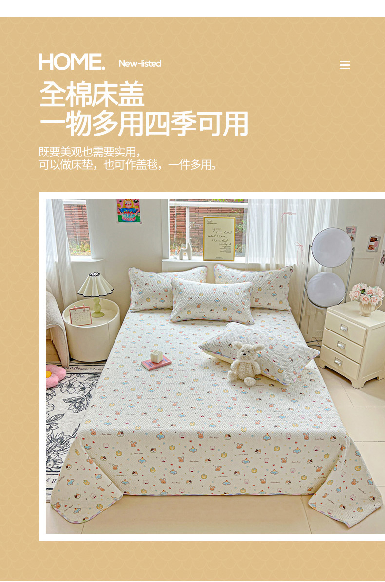 当前位置: 91家纺网 > 商品网购 > 床上用品 > 床盖 > 羽爱家纺 2025新款A类双面全棉印花床盖套件 萌宠国度