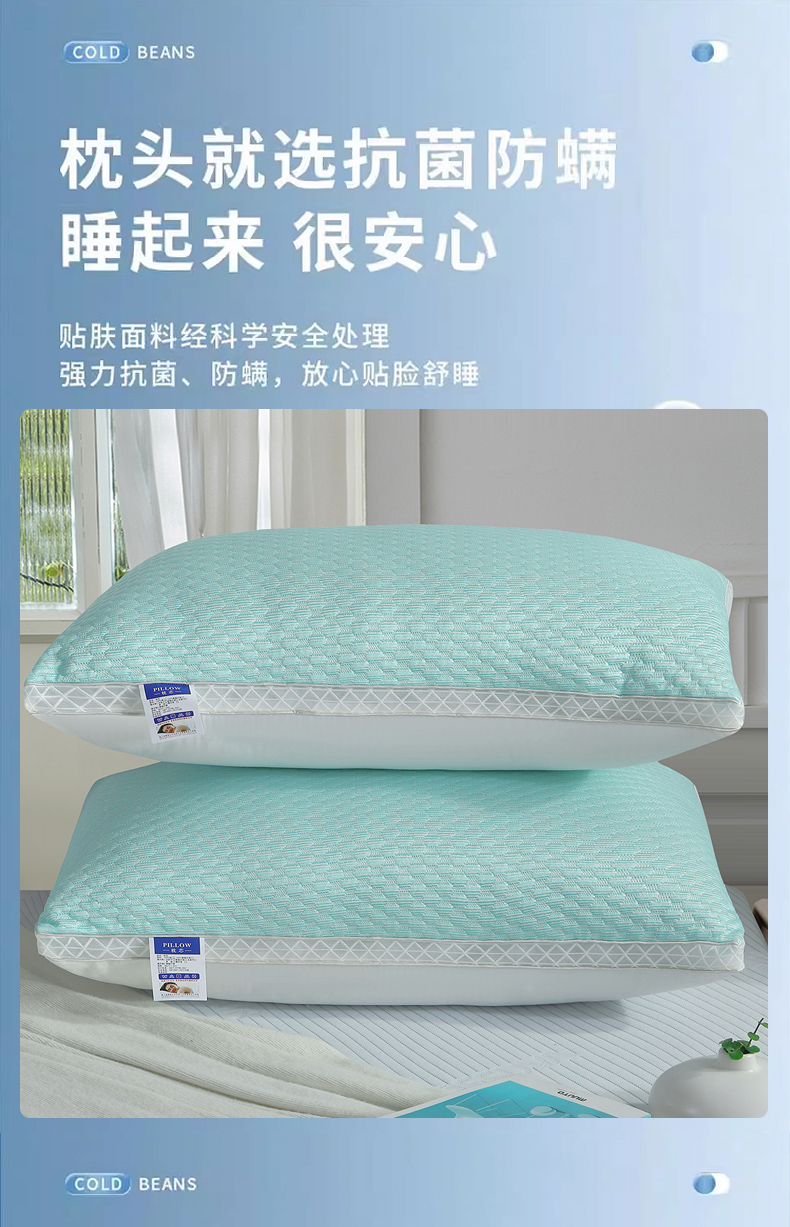 当前位置: 91家纺网 > 商品网购 > 枕头/枕芯/保健枕/颈椎枕 > 普通枕芯 > 大熊枕芯 2025新款抗菌防螨冰豆豆枕枕头枕芯 绿色中枕一对