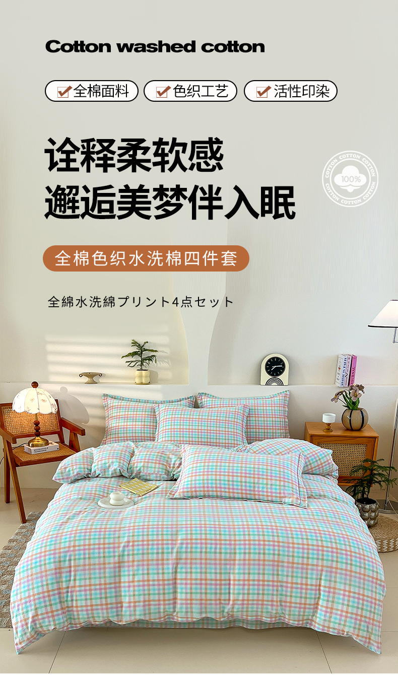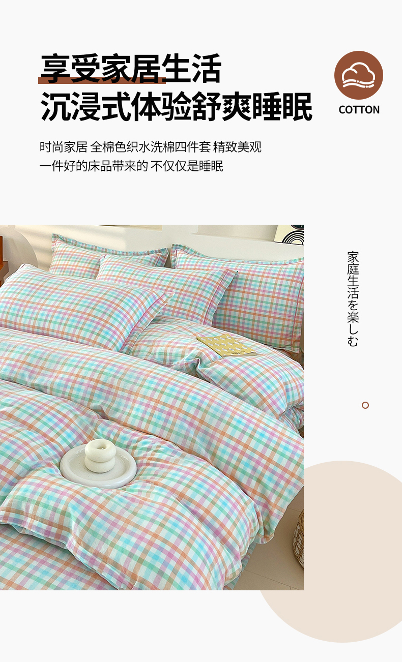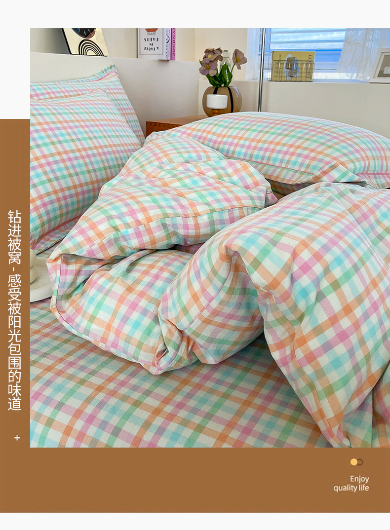 商品名称:金窝窝家纺 2025新款纯棉水洗棉四件套 假日阳光彩格