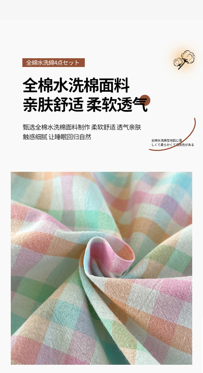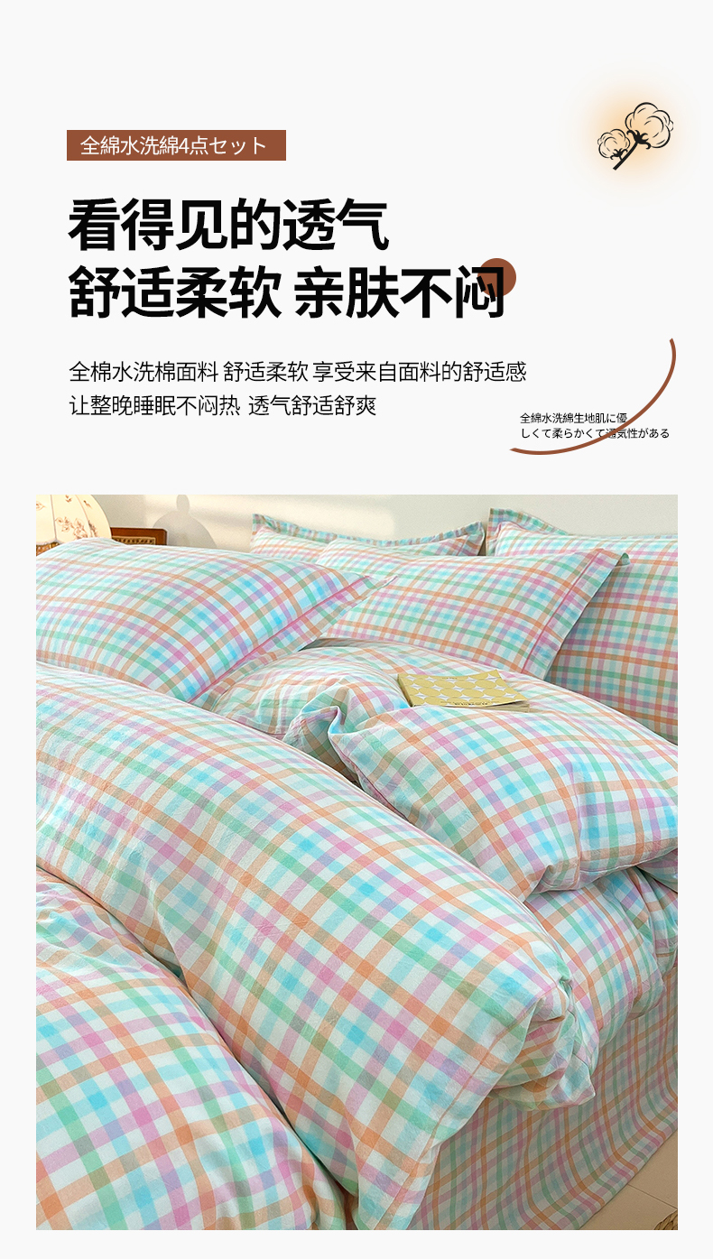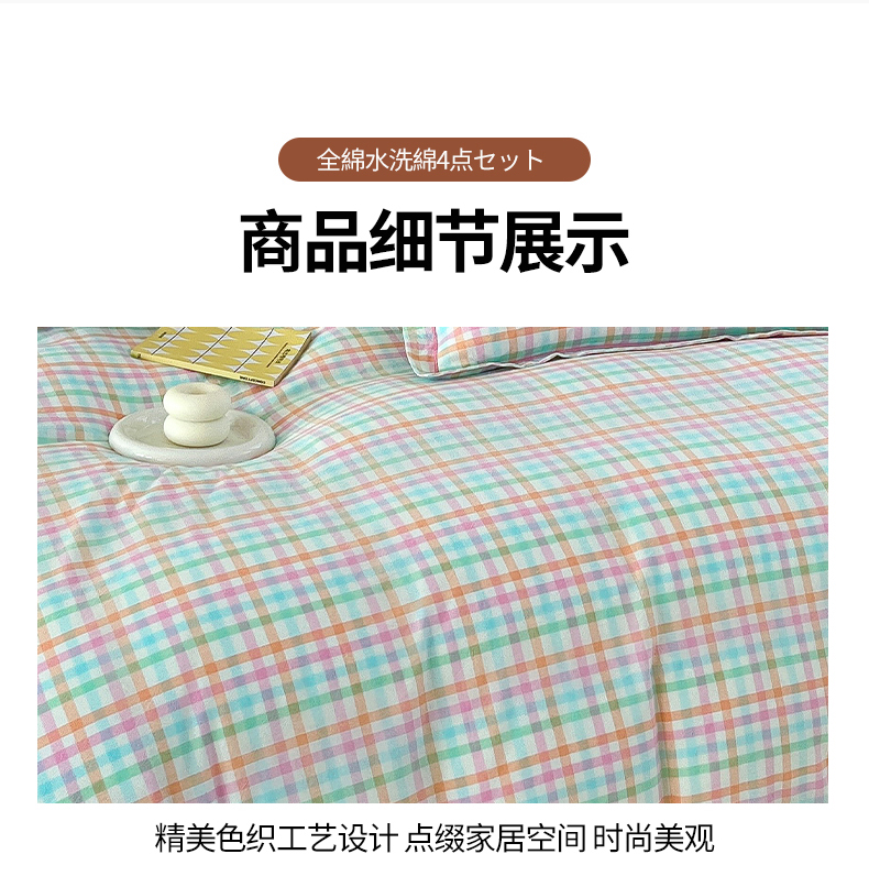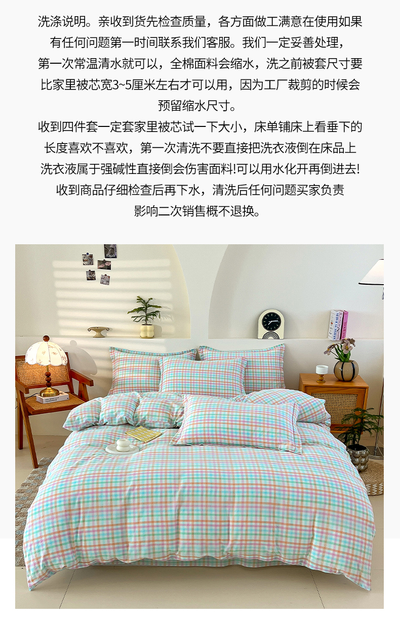 商品名称:金窝窝家纺 2025新款纯棉水洗棉四件套 假日阳光彩格