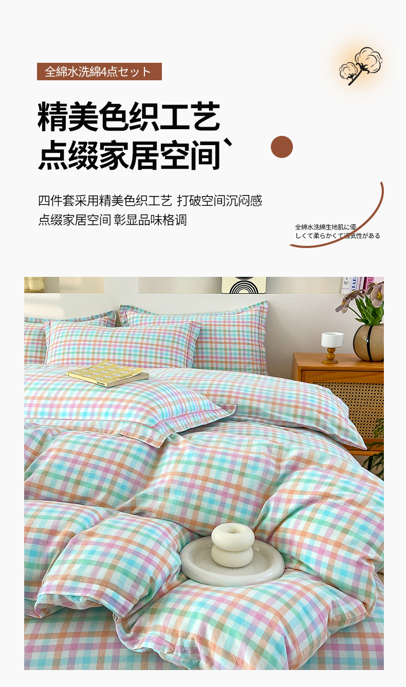 金窝窝家纺 2025新款纯棉水洗棉四件套 假日阳光彩格