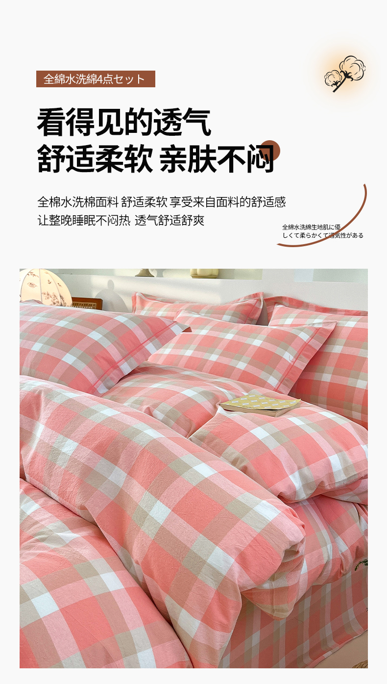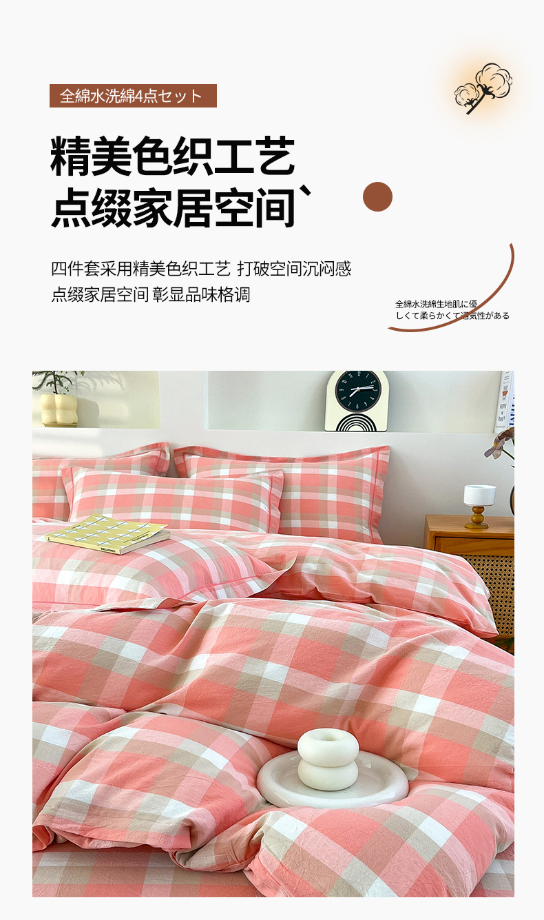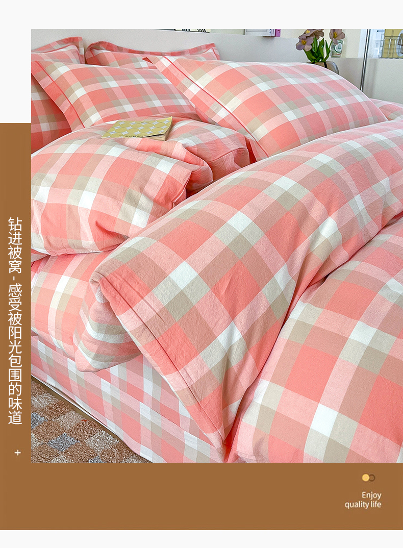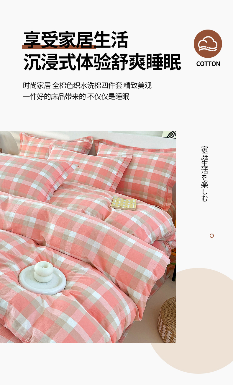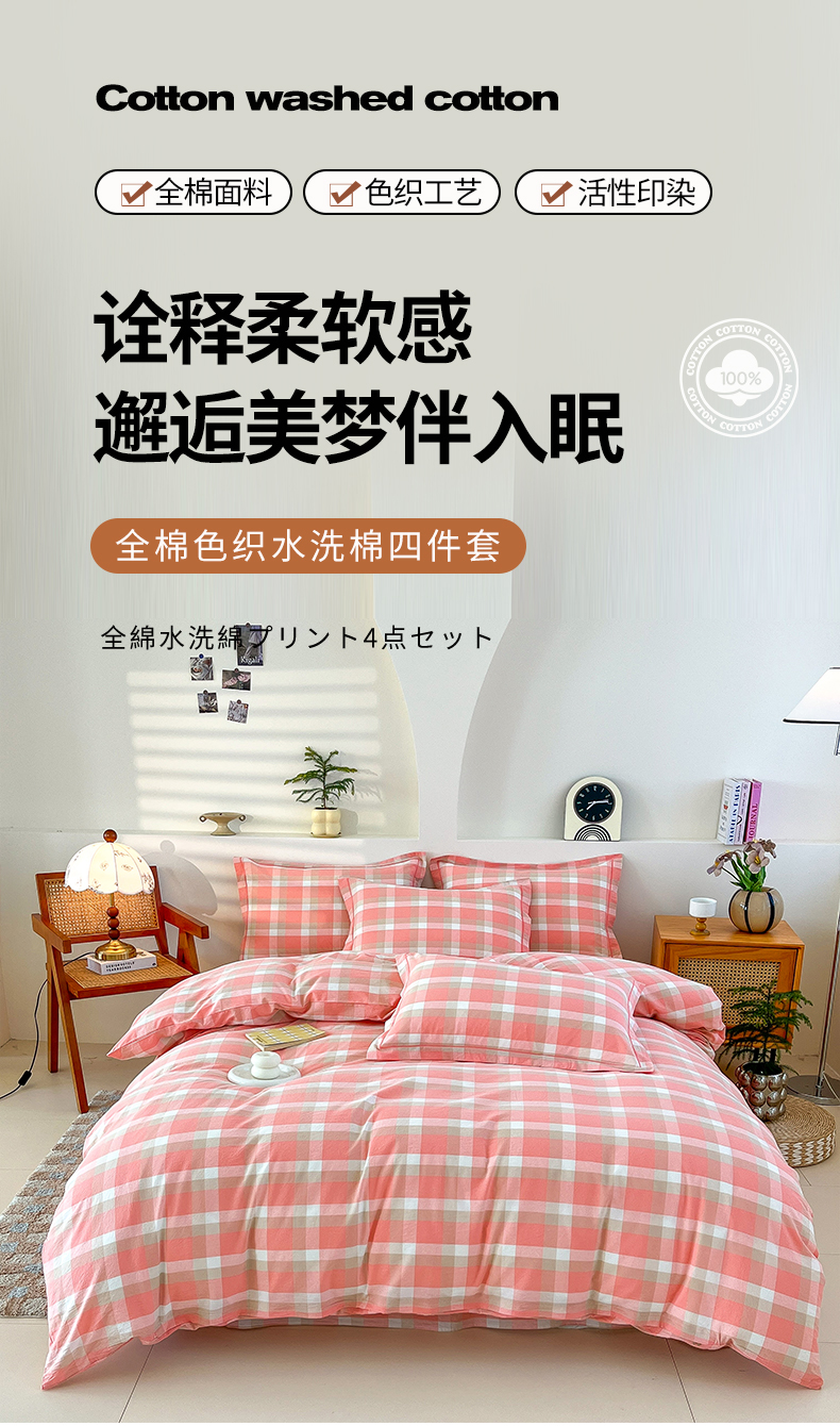 (总)金窝窝家纺 2025新款纯棉水洗棉四件套,爱锦灰,巴黎彩格,巴黎灰,春意盎然淡绿色,大发格粉蓝,大发格绿,多爱多粉,繁星奶咖米格,假日阳光彩格,绿咖时尚格,绿小格,米格,浅蓝小格,三彩格,时尚风蓝灰,相遇兰橙,相遇小粉,意境蓝灰,优雅粉格,优雅橘,优雅兰