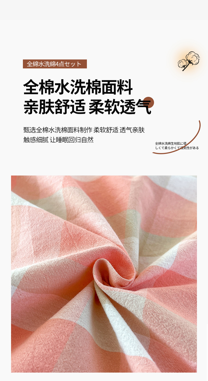商品名称:金窝窝家纺 2025新款纯棉水洗棉四件套 优雅粉格