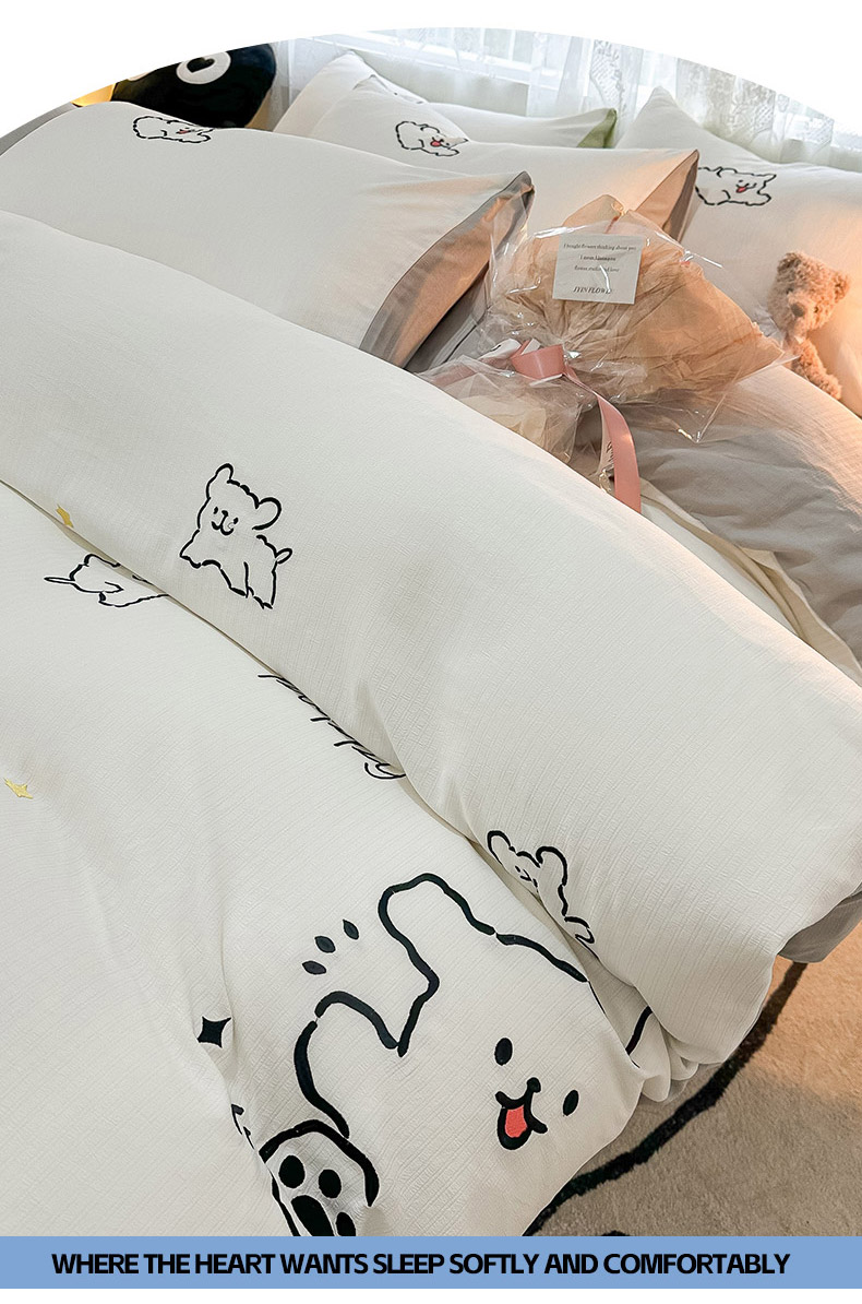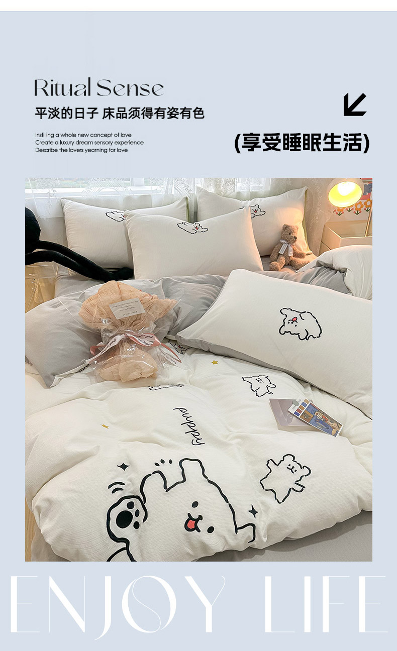 当前位置: 91家纺网 > 商品网购 > 床品套件 > 四件套 > 针织棉四件套 > 多乐家纺 2025新款超柔加厚有氧提花针织小竺棉绣花四件套(提供买家秀) 小白-白灰