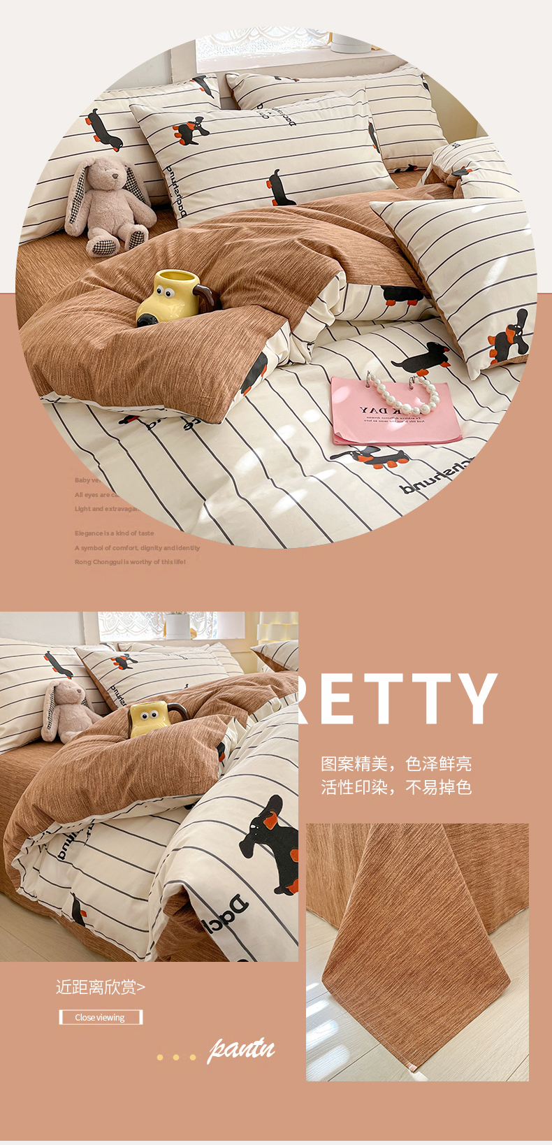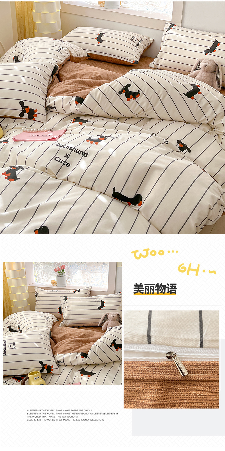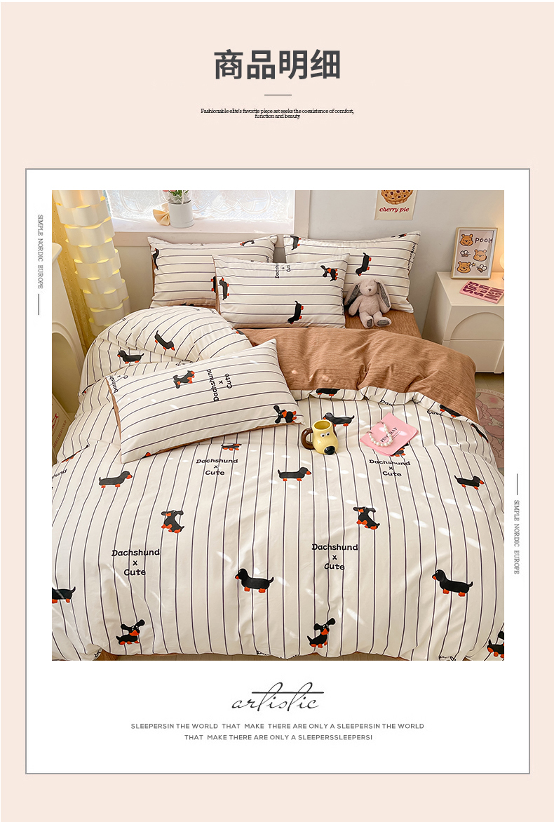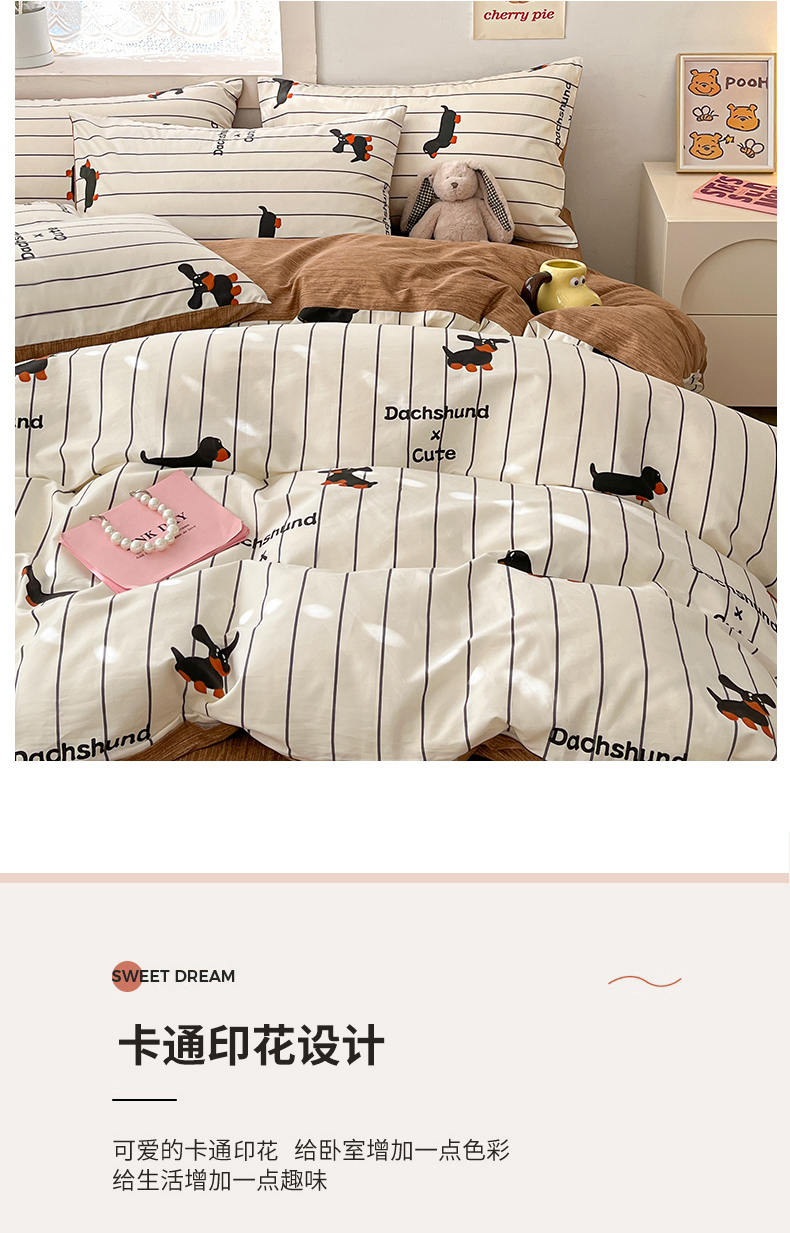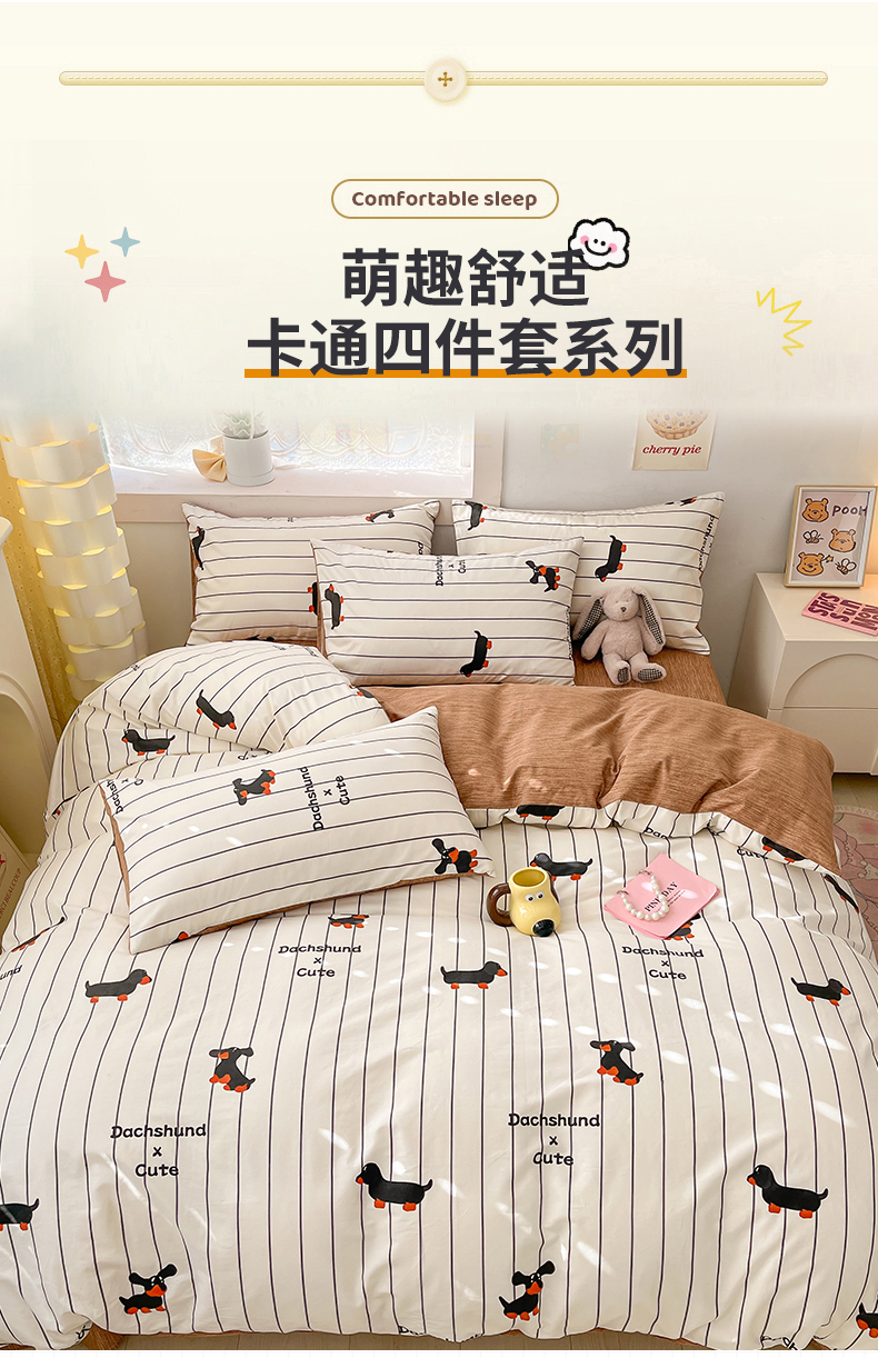 吉象家纺13070全棉四件套纯棉四件套直播小清新男孩女腊肠犬