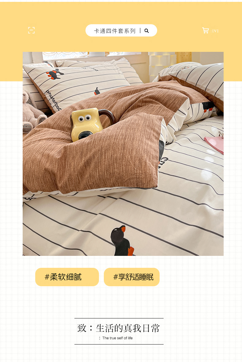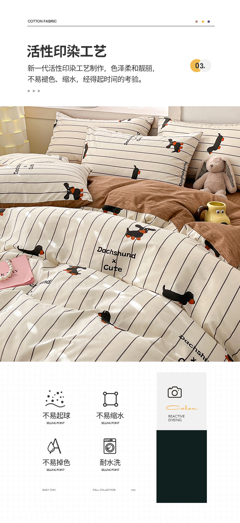 商品名称:吉象家纺13070全棉四件套纯棉四件套直播小清新男孩女腊肠犬