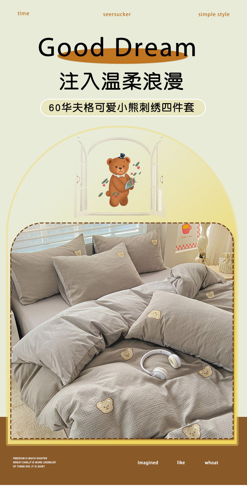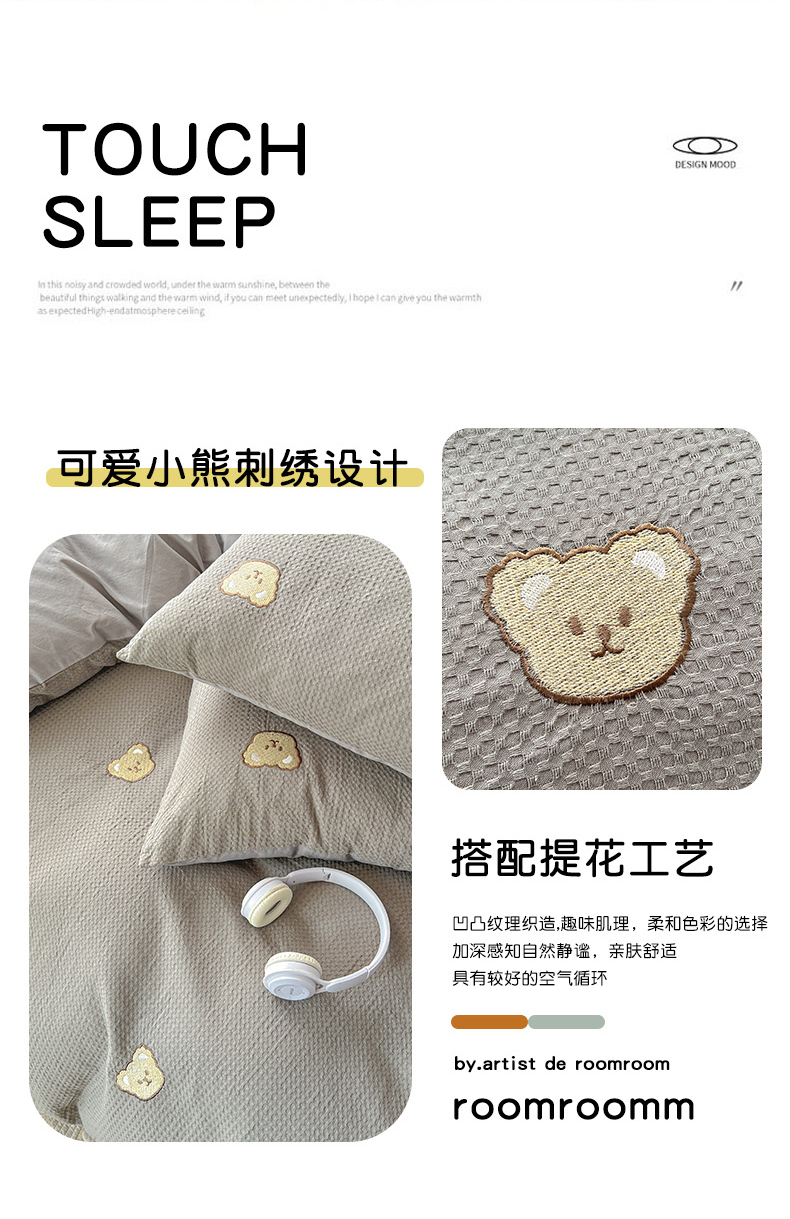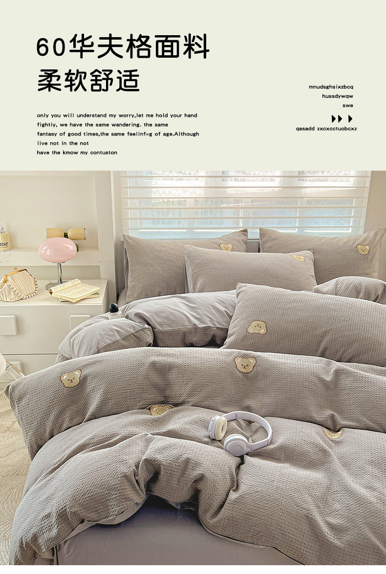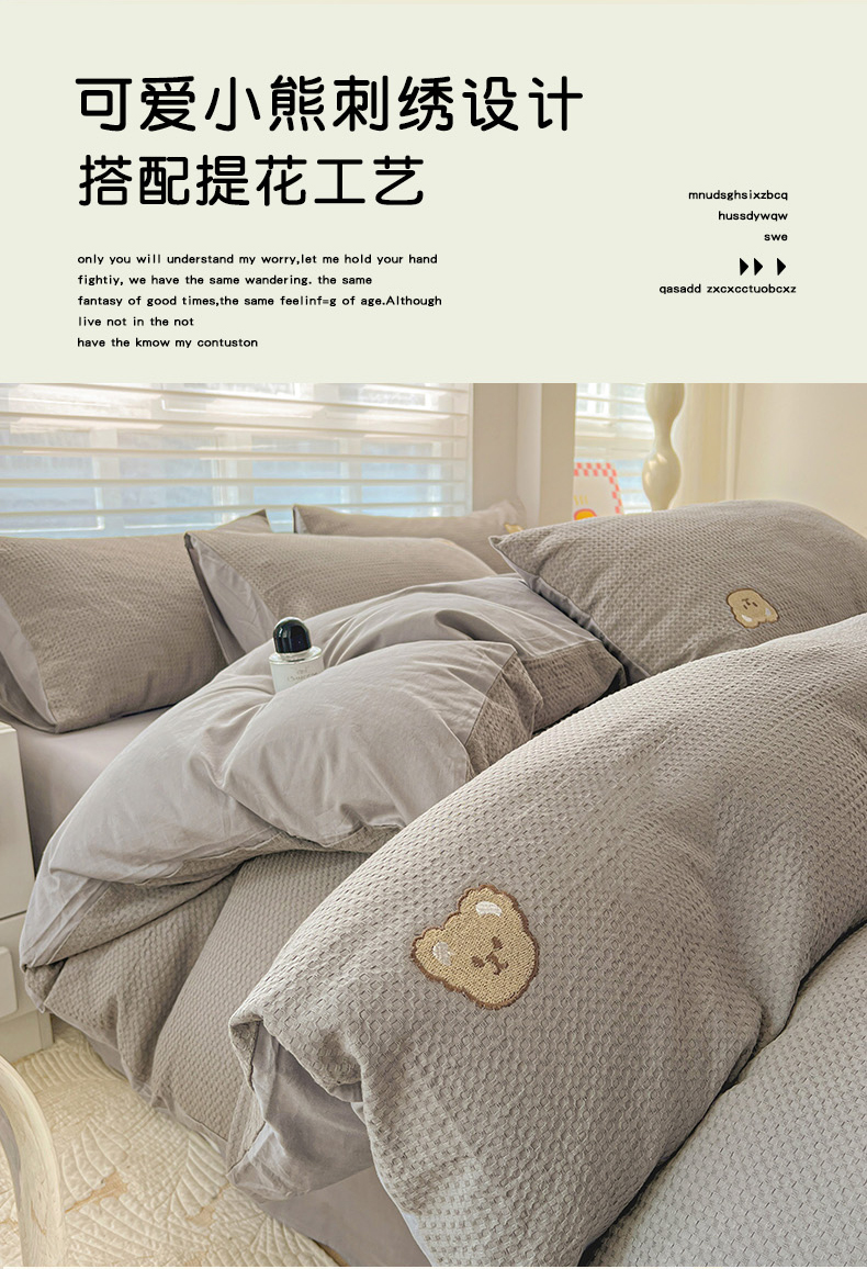当前位置: 91家纺网 > 商品网购 > 床品套件 > 四件套 > 全棉普通四件套 > 静家居 2025新款全棉纯棉华夫格北欧小熊刺绣四件套系列-风格一 北欧小熊-浅灰