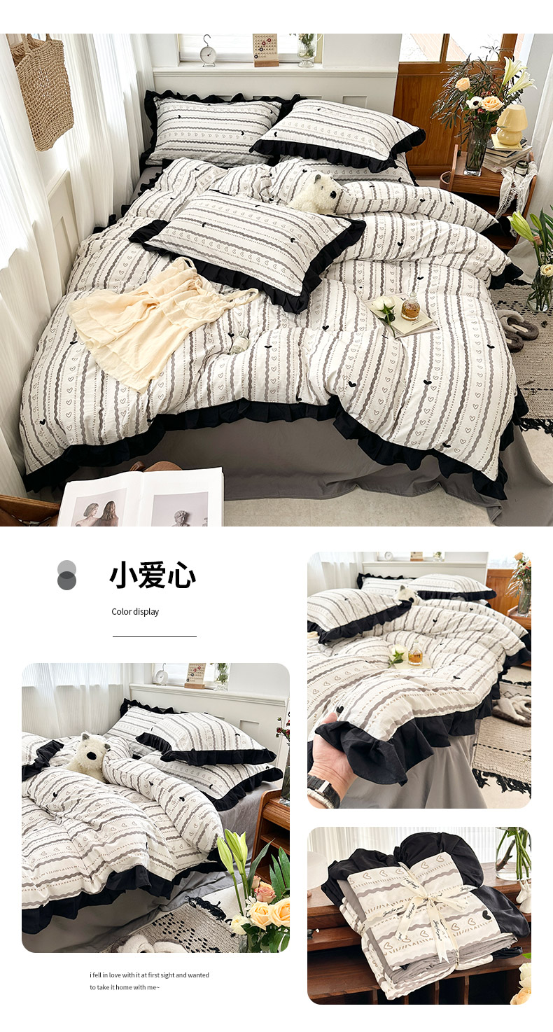 当前位置: 91家纺网 > 商品网购 > 床品套件 > 四件套 > 其它四件套 > 芷凡家纺 2025新款皱皱云感棉赫本风韩式花边四件套 小爱心
