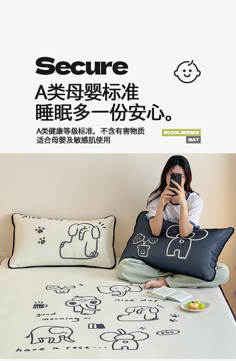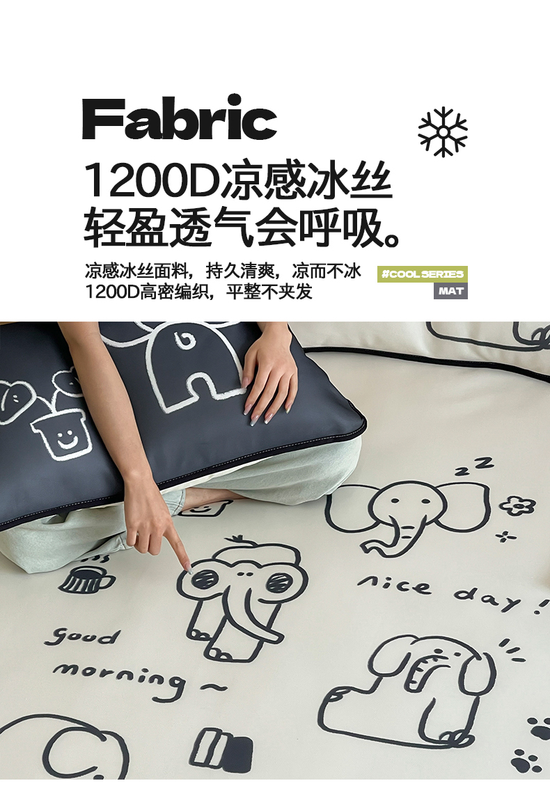 当前位置: 91家纺网 > 商品网购 > 床品套件 > 三件套 > 桃子家居 2025新款A类ins卡通数码印花1200D冰感冰丝凉席系列 冰感席混搭-漫画象