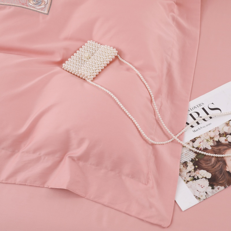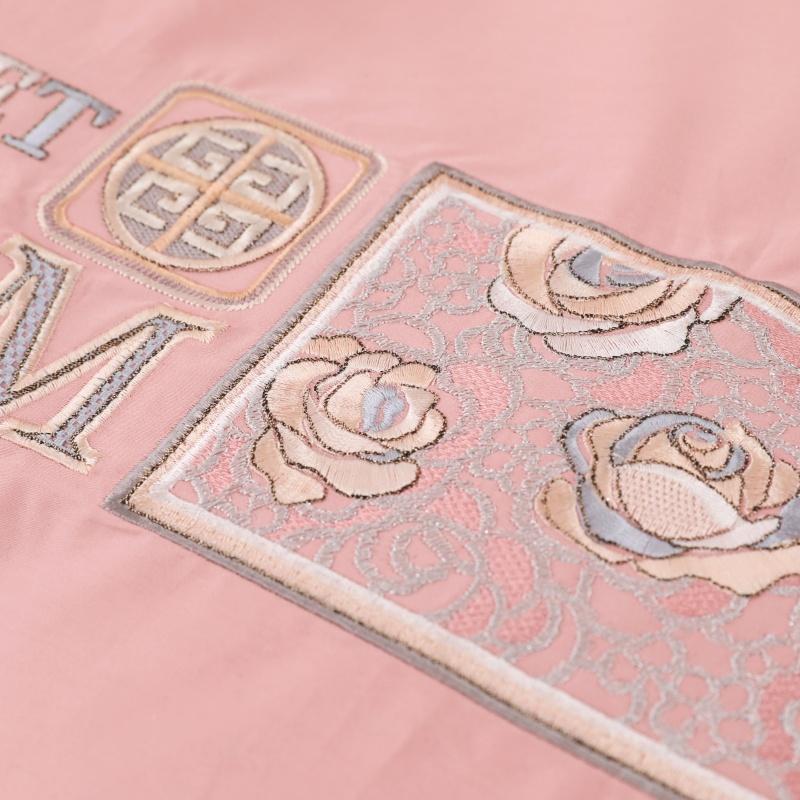 优姿家纺2025新品高端加密全棉100支绣花宽边四件套 玫瑰花簇粉色