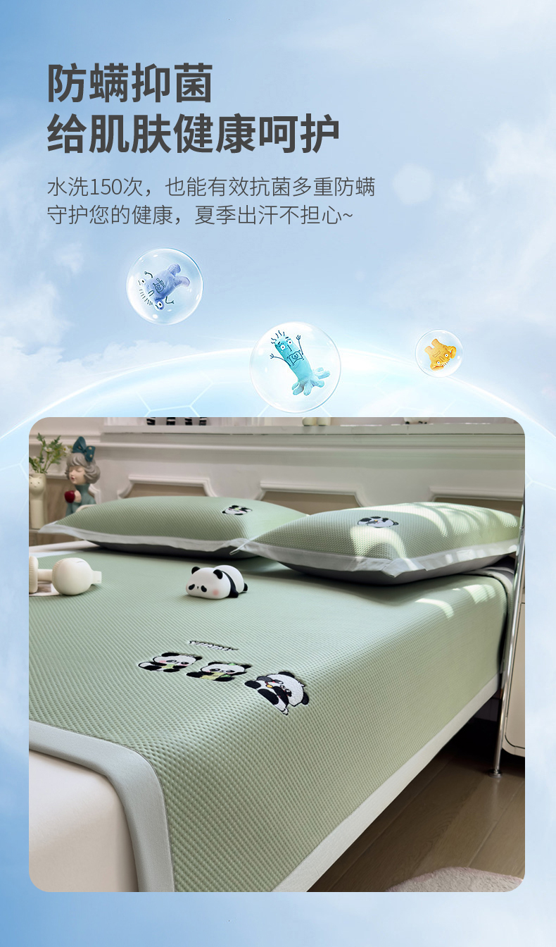 (总)席世家 2025新款A类凉感冰豆豆凉席-花卉卡通系列,呆萌熊猫,绿意,萌兔,小熊-粉,小熊-蓝,花漾