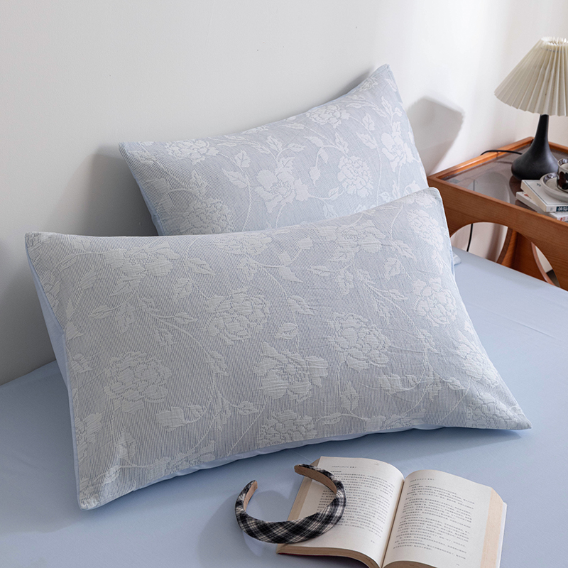 商品名称:倾慕 2025新款A类全棉多层纱玫瑰单枕套 蓝玫瑰