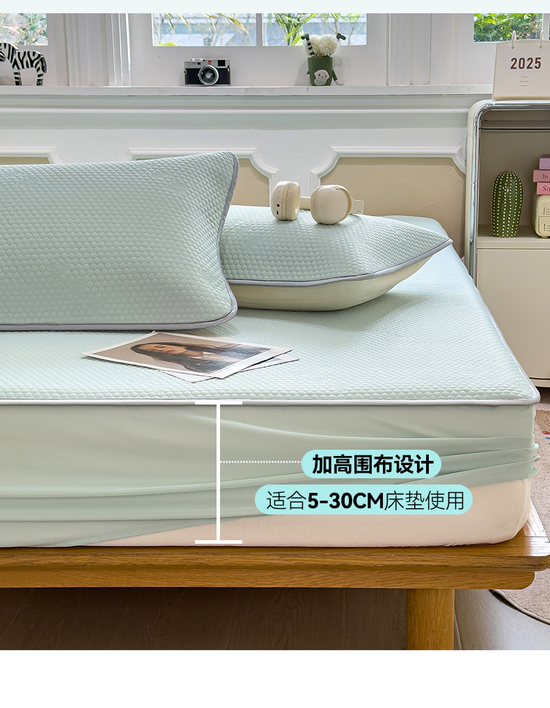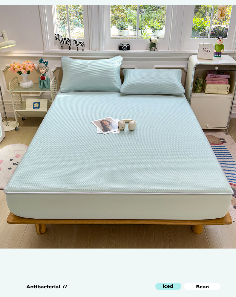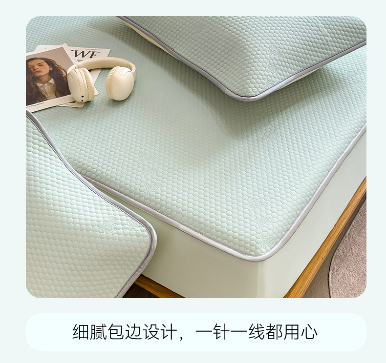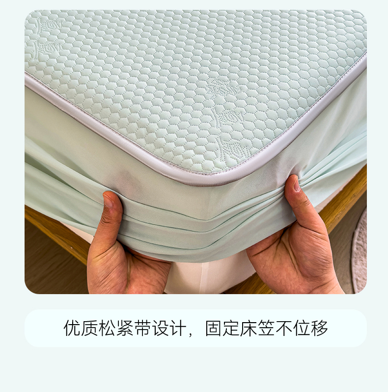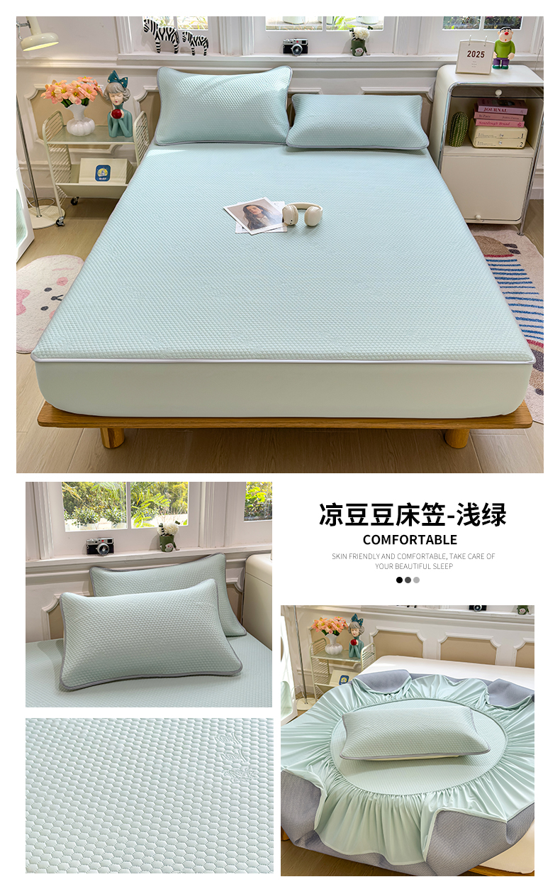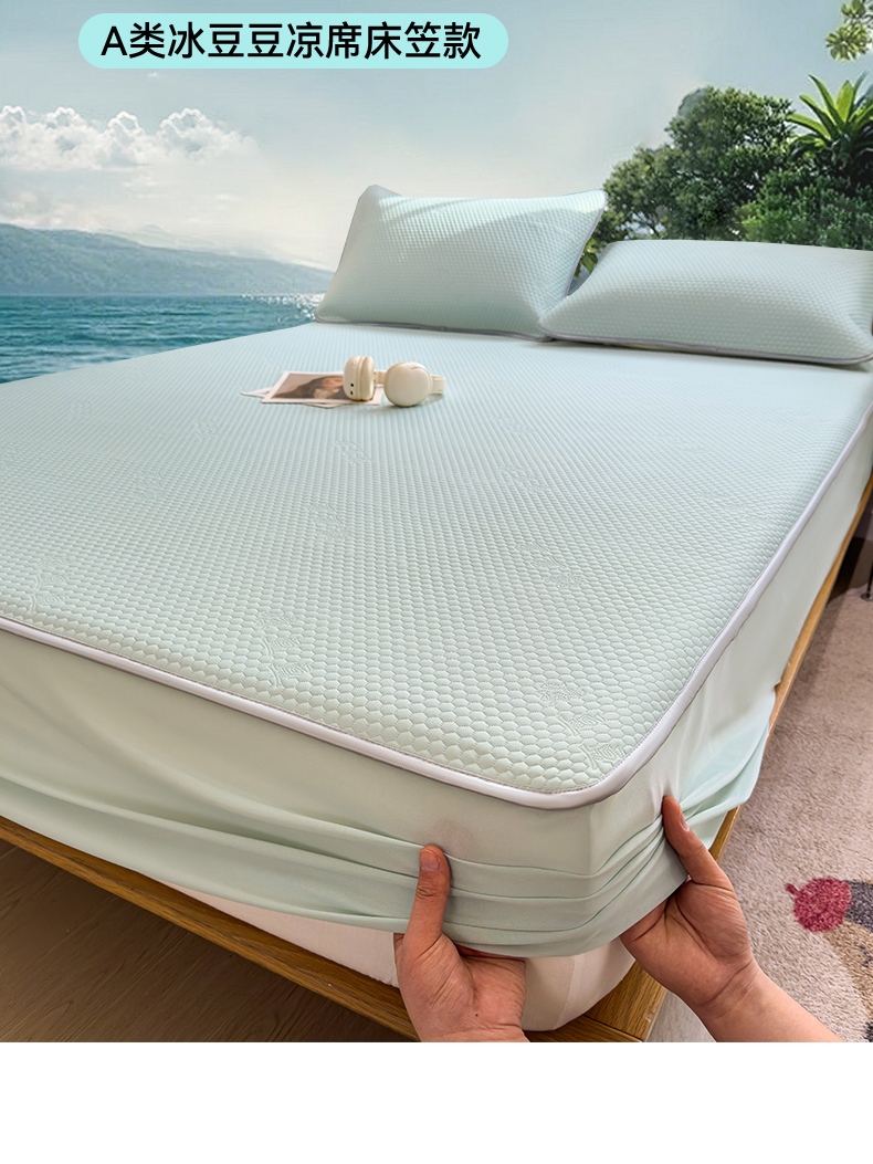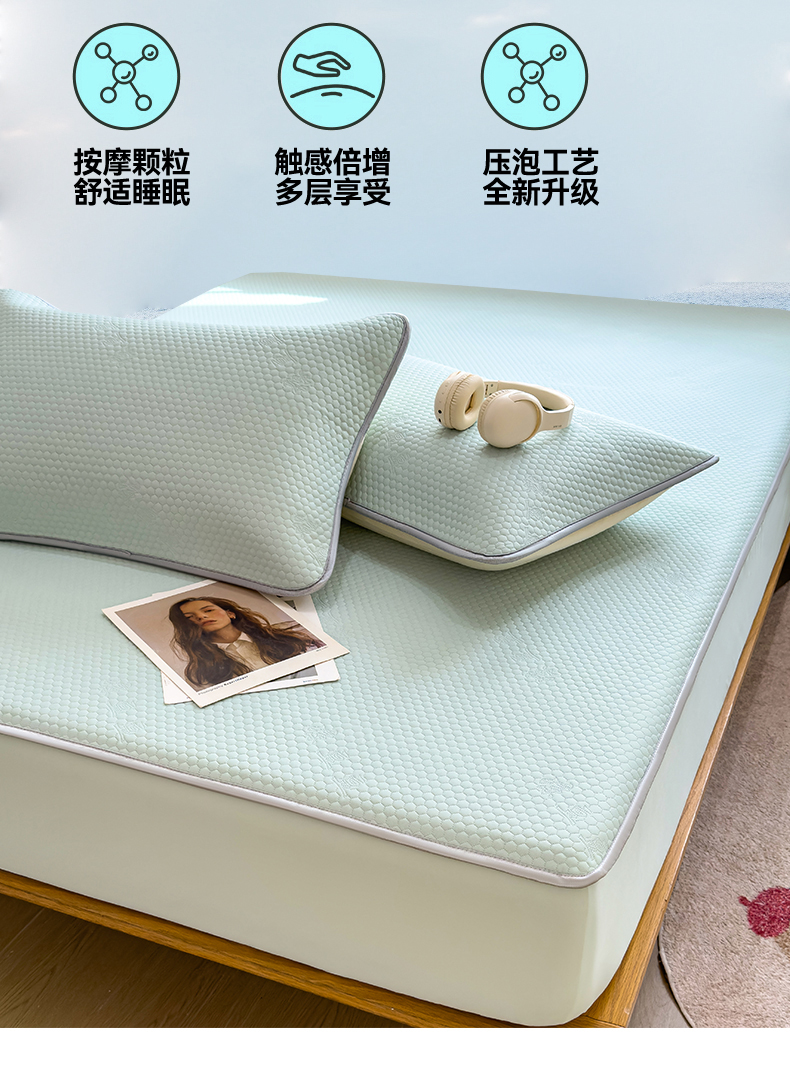 商品名称:兄弟坊 2025新款凉感冰豆豆凉席床笠床护垫学生床笠 凉豆豆床笠-浅绿