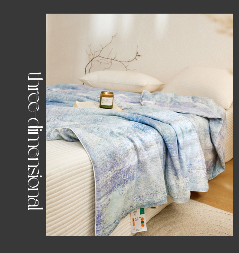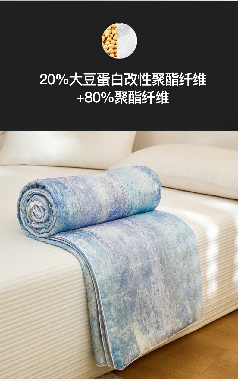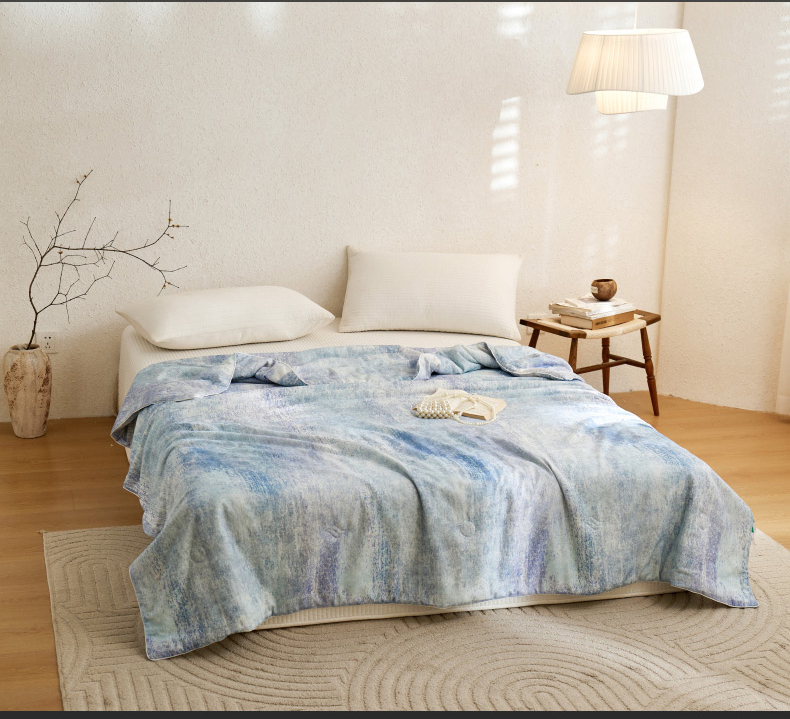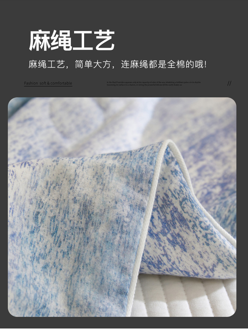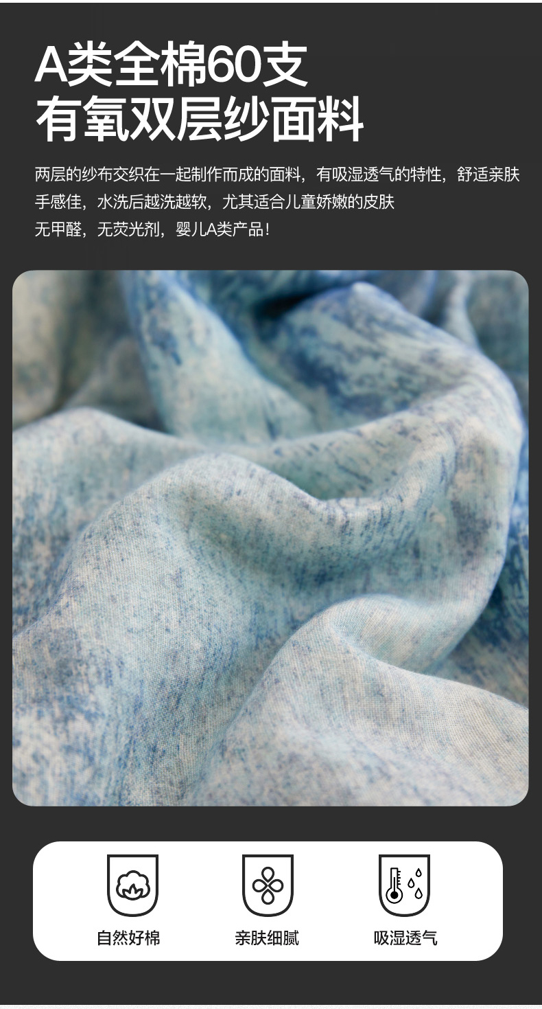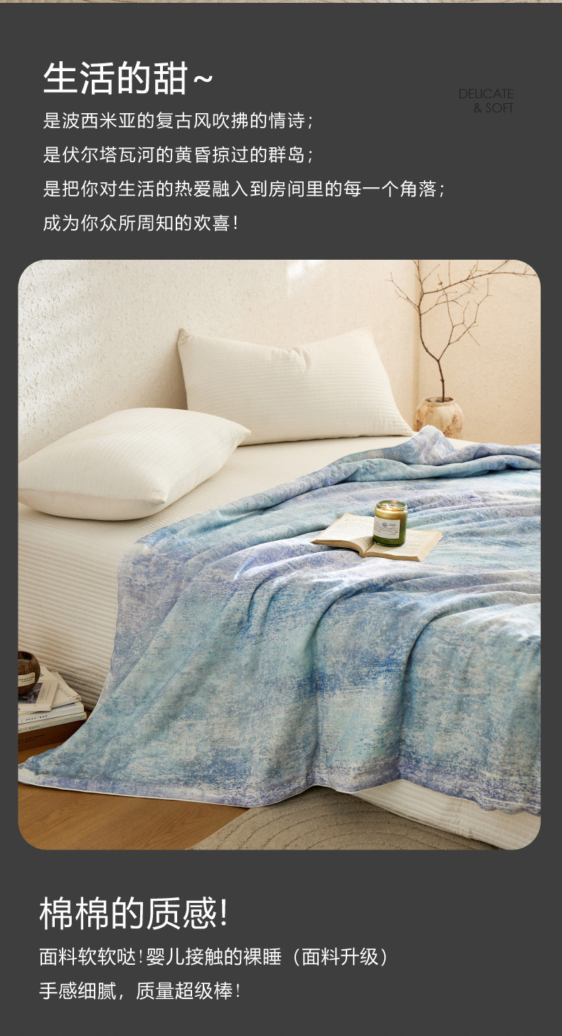 商品名称:蜜柚 2025新款赛瑞娜复古系列 A类全棉纯棉60支有氧双层纱复古夏被夏凉被空调被 约定蓝