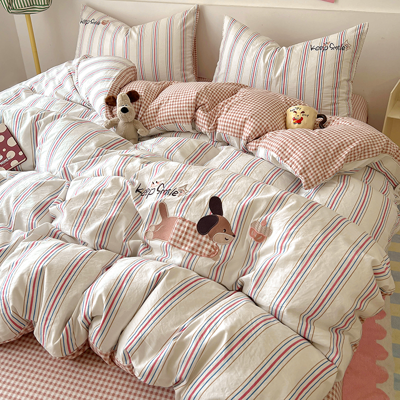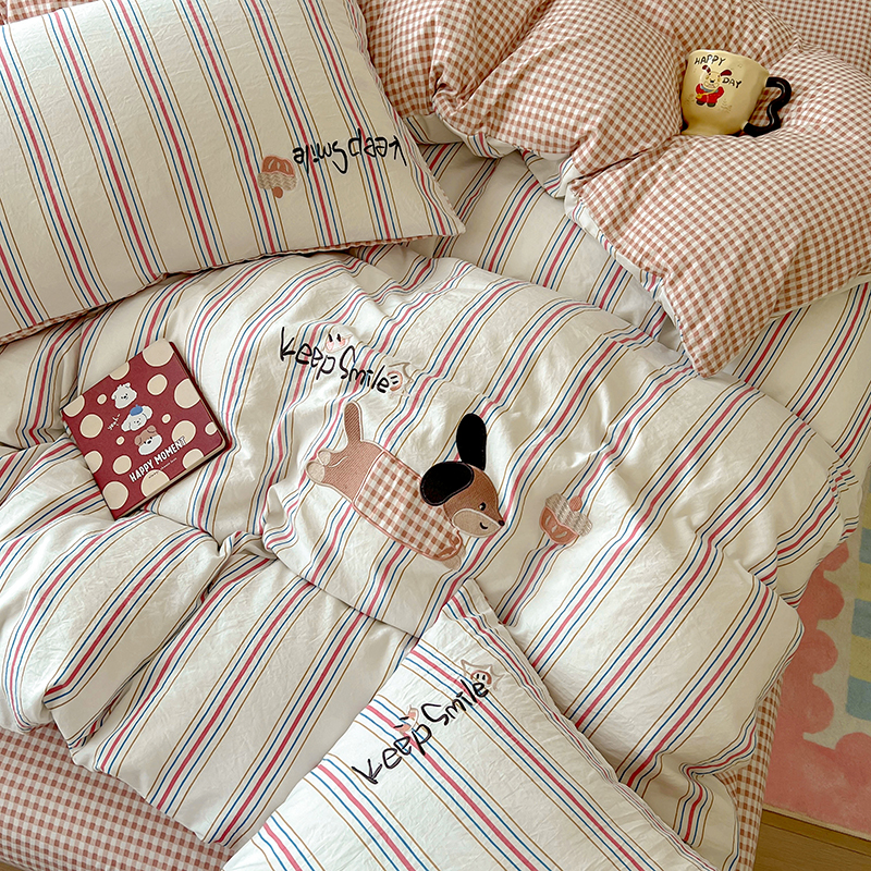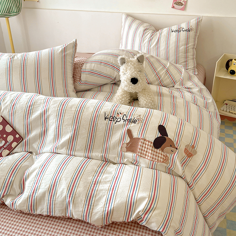 (总)漫仙阁家纺 2025年超柔贴布绣四件套,腊肠狗—绿色,腊肠狗—粉色,腊肠狗—蓝色,腊肠狗—黄色