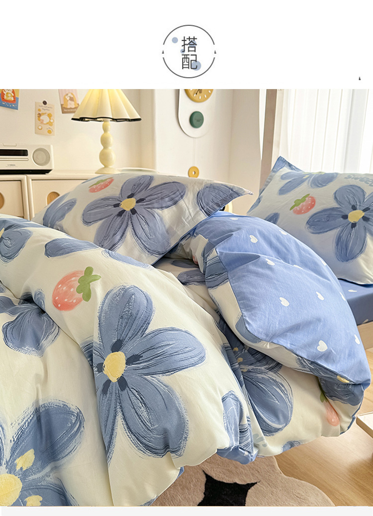 卡普二店 2024新款爆款加厚卡通小清新全棉纯棉学生宿舍三件套床笠隔天可拿 蓝色甜心