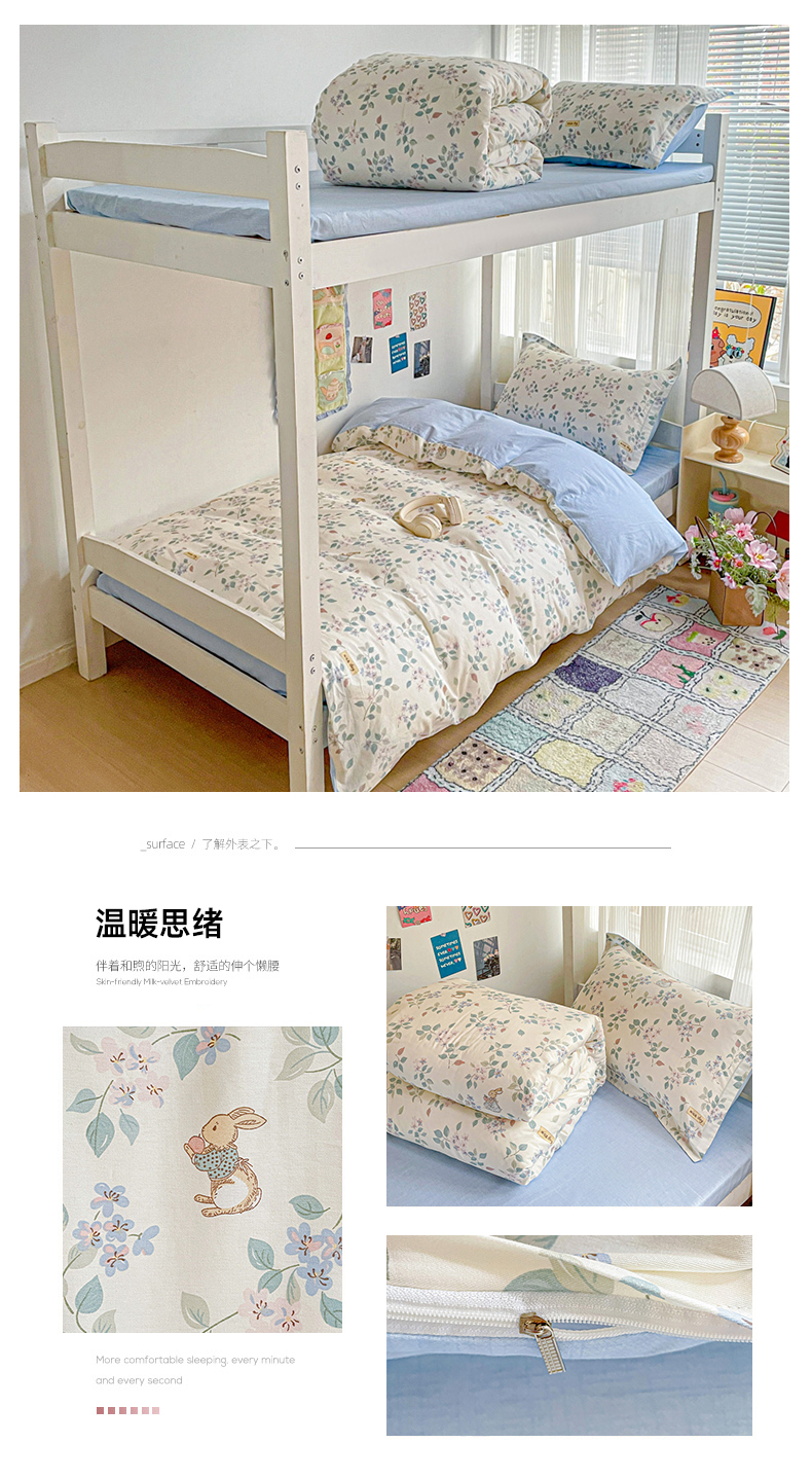 卡普二店 2024新款爆款加厚卡通小清新全棉纯棉学生宿舍三件套床笠隔天可拿 花田小兔,花田小兔