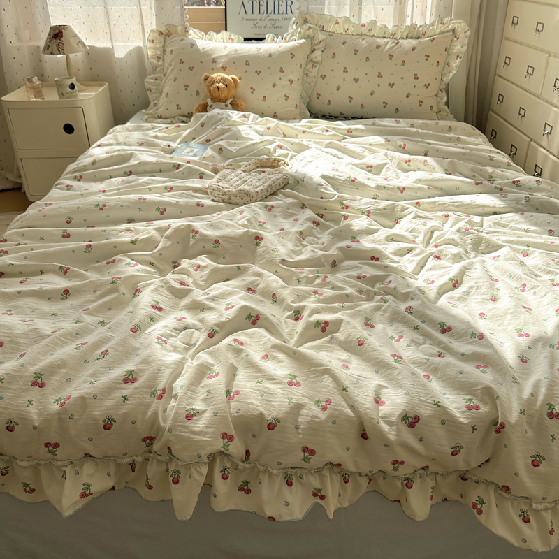 轻奢坊 2025新款水洗棉密拷花边夏被夏凉被空调被四件套 艺朵