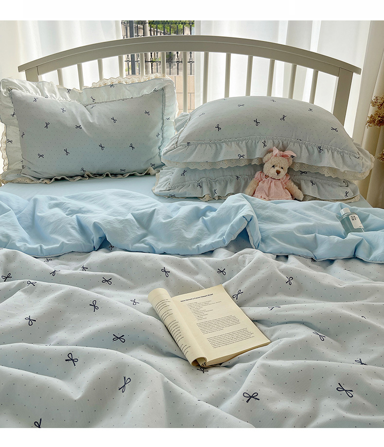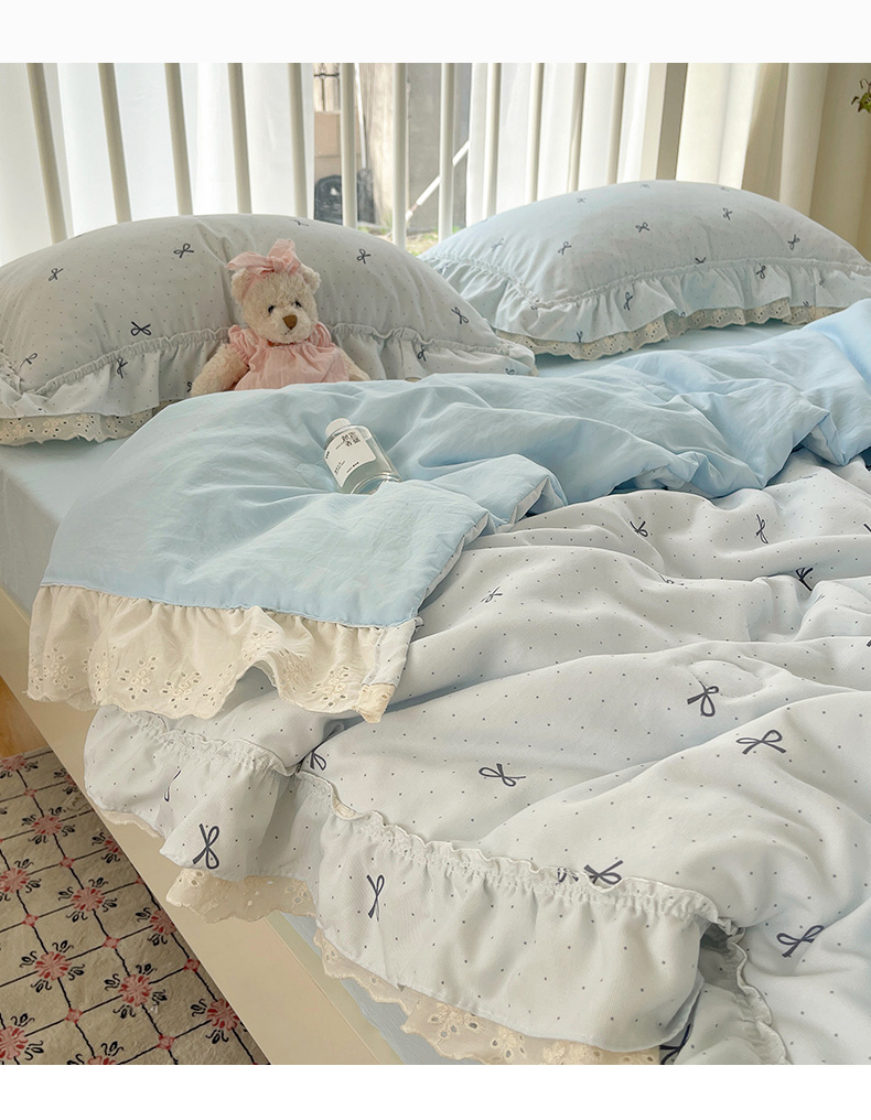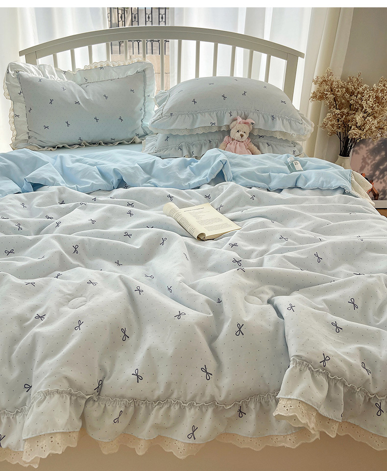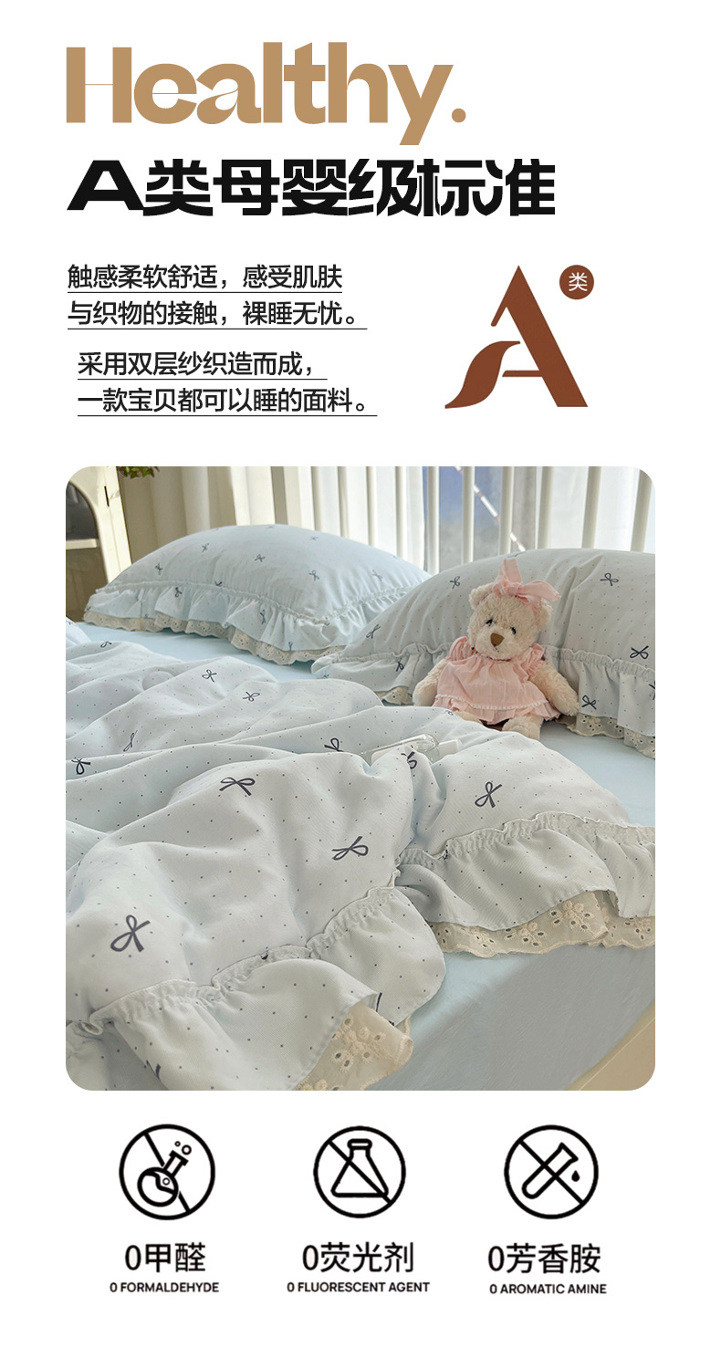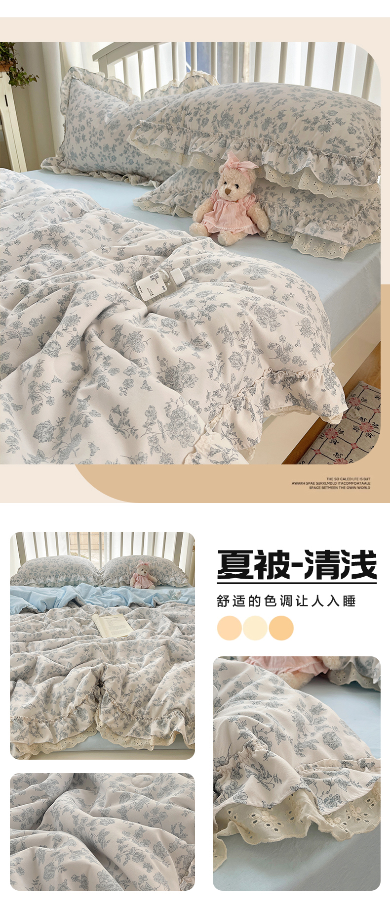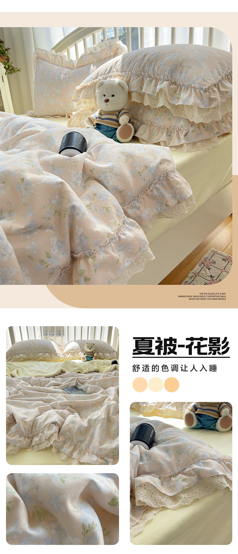 当前位置: 91家纺网 > 商品网购 > 床品套件 > 四件套 > 夏被四件套 > 轻奢坊 2025新款水洗棉双层纱双层花边夏被夏凉被空调被四件套 夏被-清浅