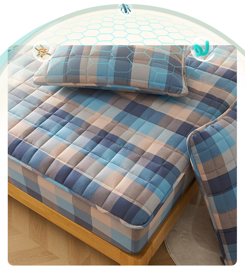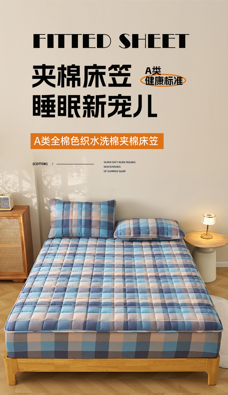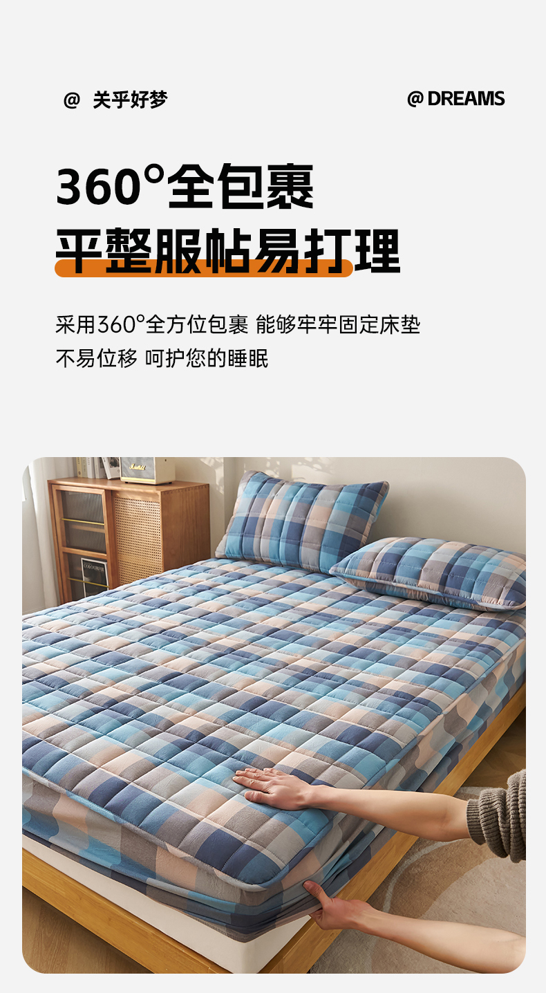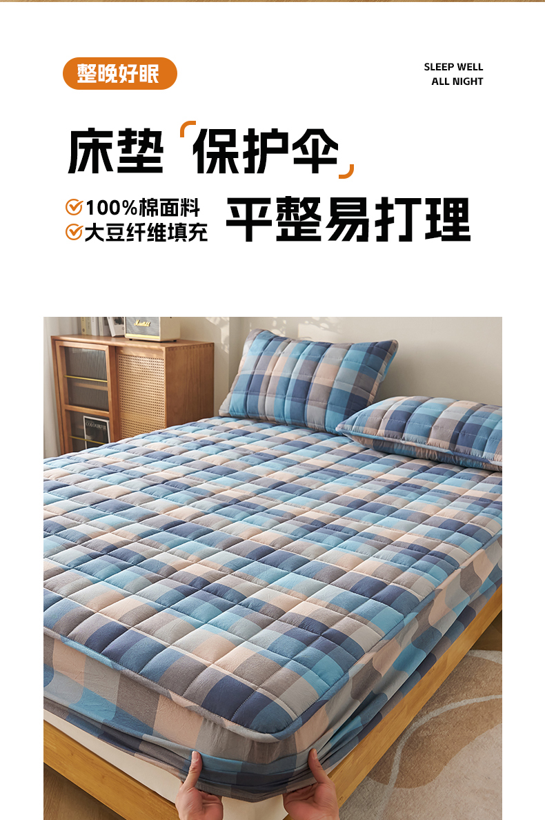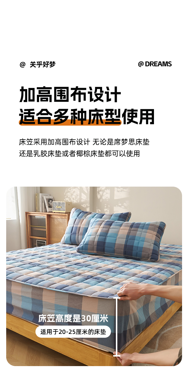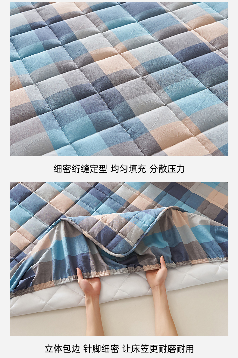 商品名称:锦丝钰床垫 2025春夏新款全棉色织水洗棉床笠 彩格